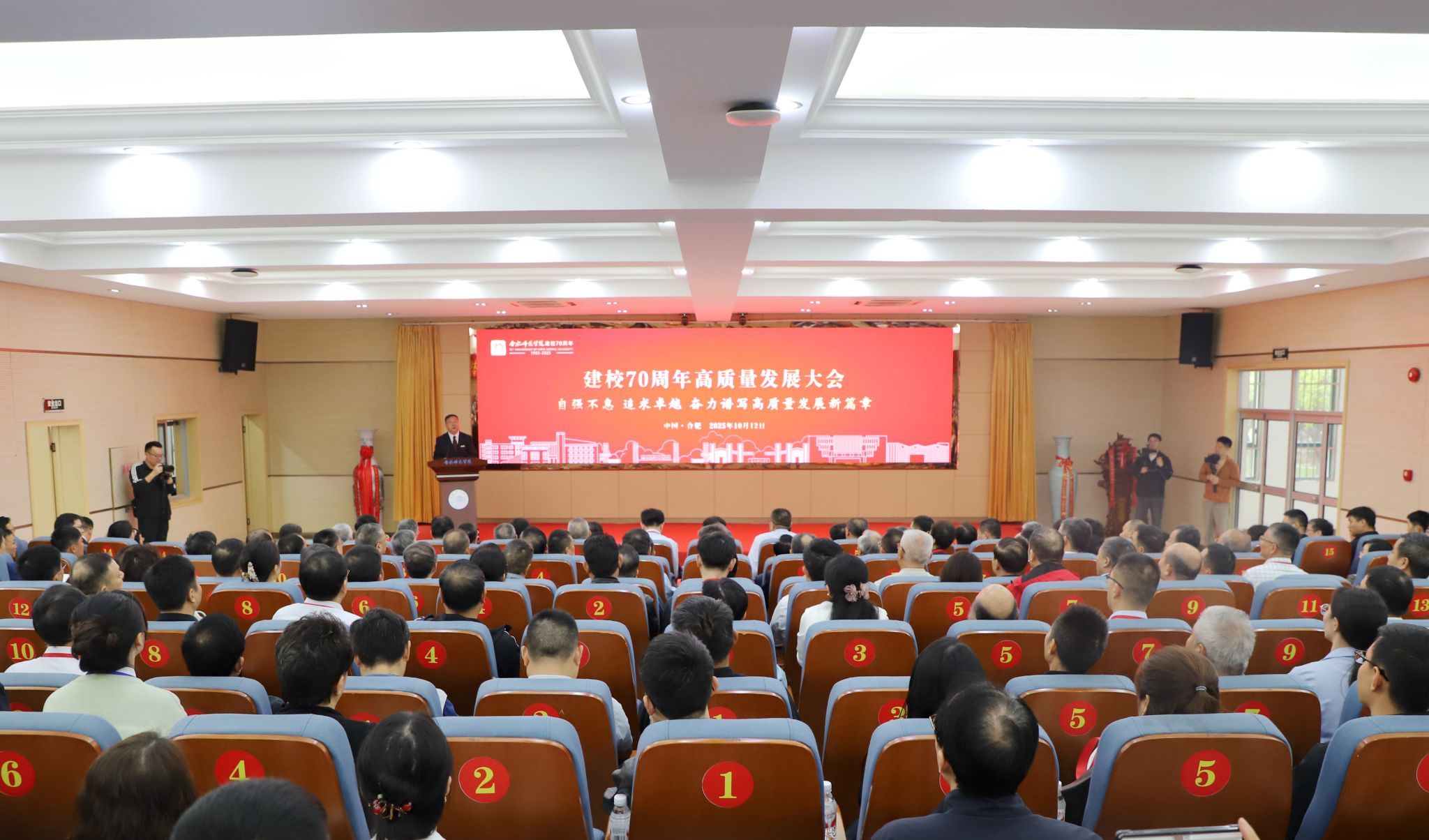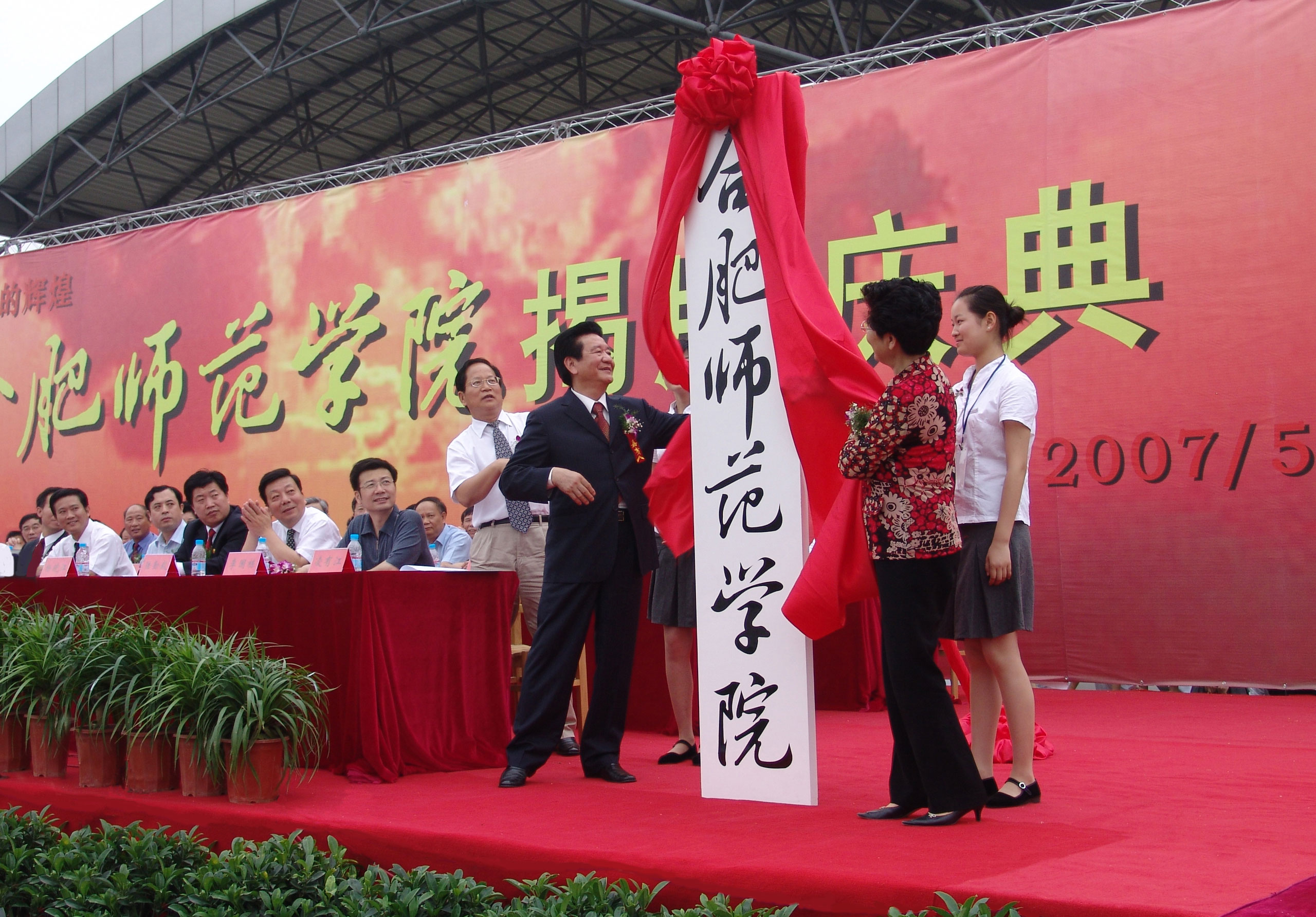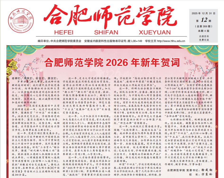 1956年,进修学院经历合并分流的重大调整。以进修学院原有师资、校舍、资产等为基础,独立设置合肥师范专科学校,并由时任进修学院院长张兆甲出任首任党委书记兼校长,以加速普高教育。新成立的合肥师范专科学校最初设有中文、史政、数学、物理、生物五个学科及教育学科教研室、体育教研室,学生785人,教师143人,职工152人。
