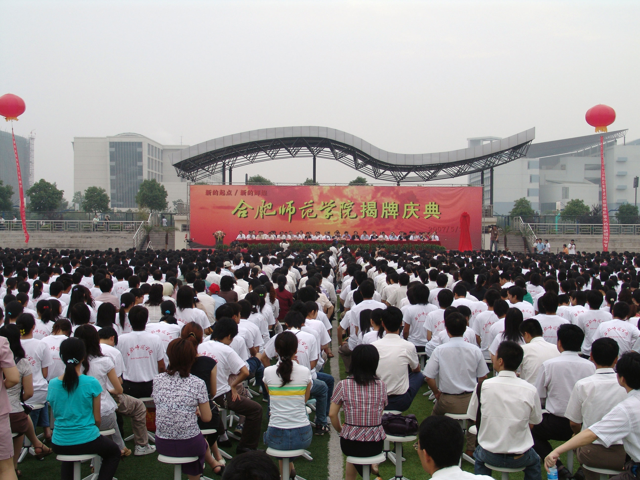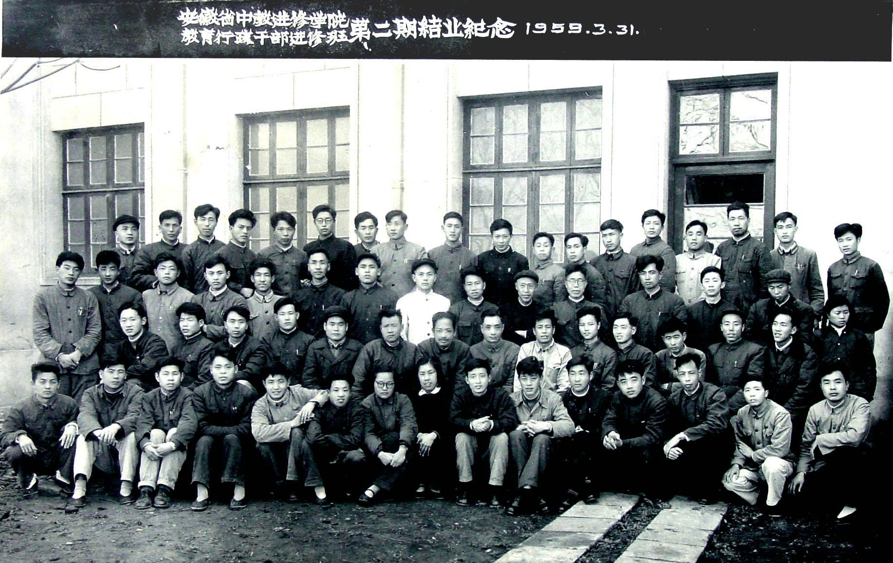 1958年7月,原安徽师范学院中文、历史、外语等部分系科迁至合肥,与合肥师范专科学校合并组建beat365在线唯一官网(史称“老合师”)。这是学校与老合师同根同源的直接依据之一。9月,除数学班外,还举办语文、物理初中师资培训班,3个班的规模为330多人。学制1年。这是学校师范学历教育的发端,表明学校开始由一个教育培训机构向较为规范的高等师范学校转变。