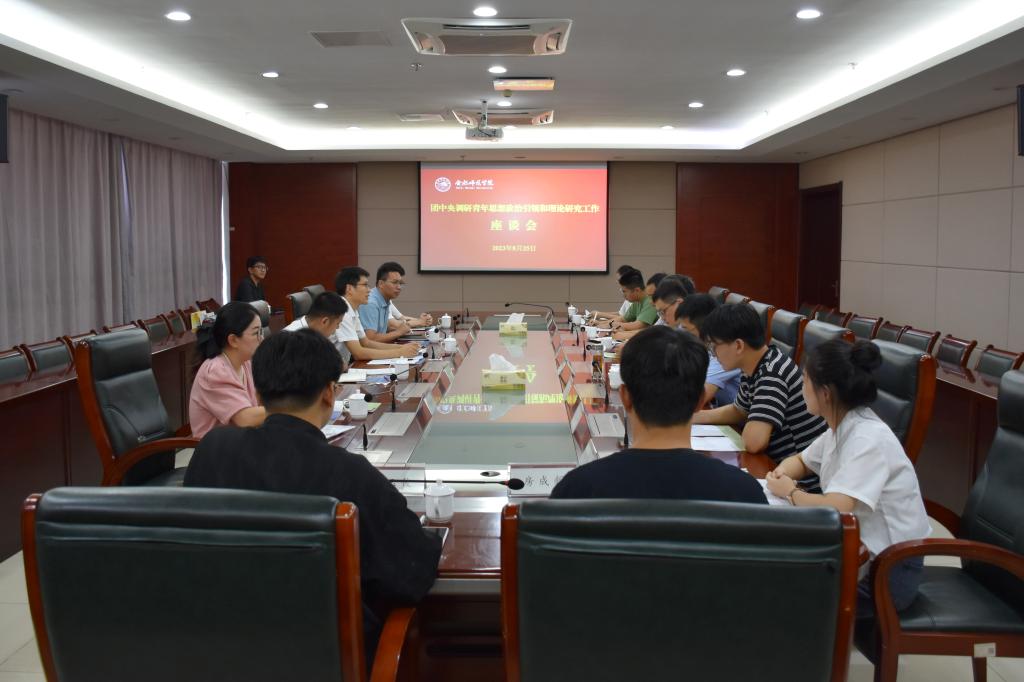 院团委书记刁文彬汇报了学院青年思想政治引领相关工作情况。与会师生代表围绕调研提纲进行了发言。