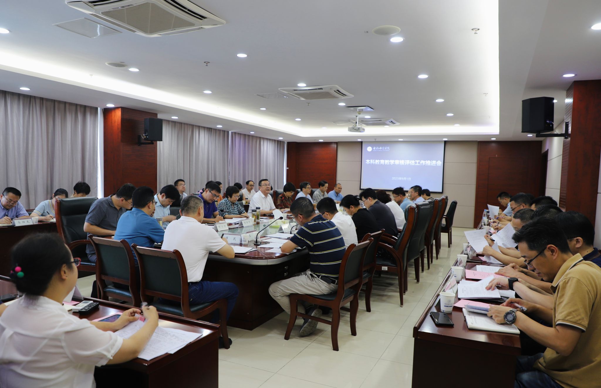 本网讯 9月1日,学院在锦绣校区行知楼2008会议室召开本科教育教学审核评估工作推进会。党委书记徐成钢作指导讲话,党委副书记、院长方东玲作总结发言,党委副书记梁立昌,党委委员、副院长华银峰出席会议,党委委员、副院长周端明主持会议并部署下一阶段重点任务。各专项工作组副组长及成员单位主要负责人,各二级学院党政主要负责人,教务处相关人员,评建办工作人员等60余人参加会议。