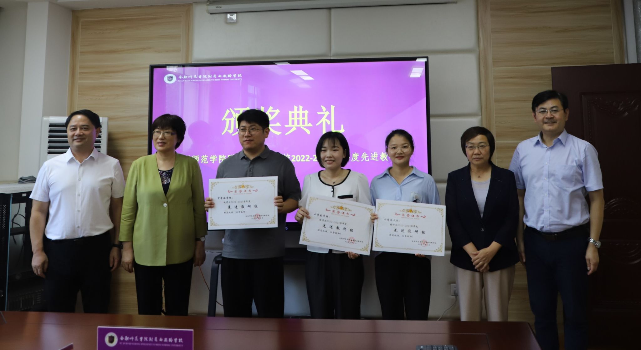 院领导实地参观附属学校的劳动课堂、实训室、少年宫、教师备课室、食堂等地校园环境,了解暑期校园文化建设情况,并来到教师办公室看望慰问教师,向在教育一线辛勤耕耘的老师们致以节日问候,还分别为附属学校的学年优秀教研组、文明办公室颁奖。院领导希望大家始终不忘为党育人、为国育才的使命初心,立足本职,潜心钻研,争做有理想信念、有道德情操、有扎实学识、有仁爱之心的“四有”好老师。