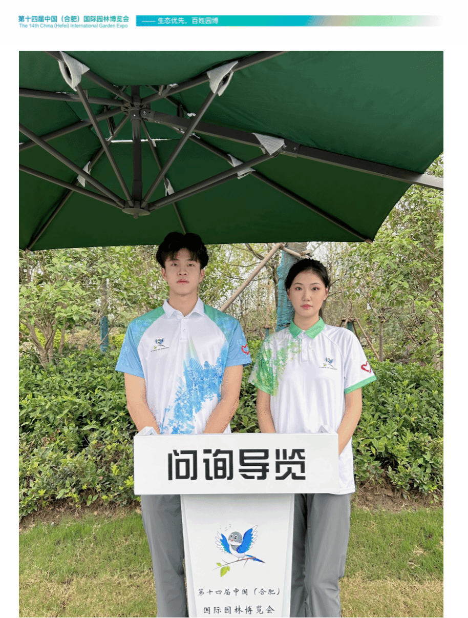 本网讯 9月26日,第十四届中国(合肥)国际园林博览会盛大开幕,合肥市民与全国各地游客共赴美丽生活绿色之约。此次园博会志愿者服装是由安徽省老字号合肥清华胜嘉服饰有限公司鹰爪品牌与beat365官网美术与设计学院张冰洁师生团队联合设计研发生产。