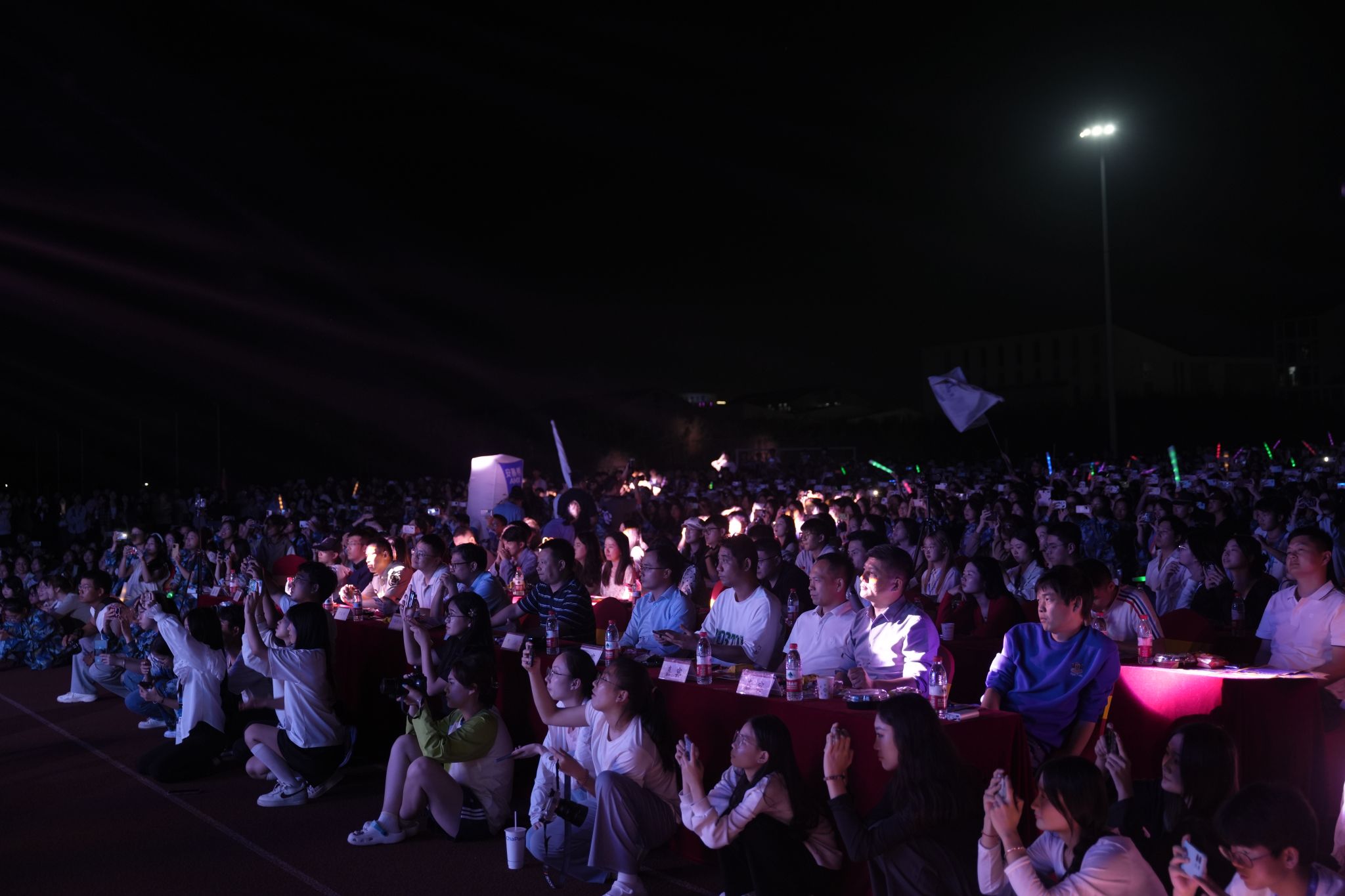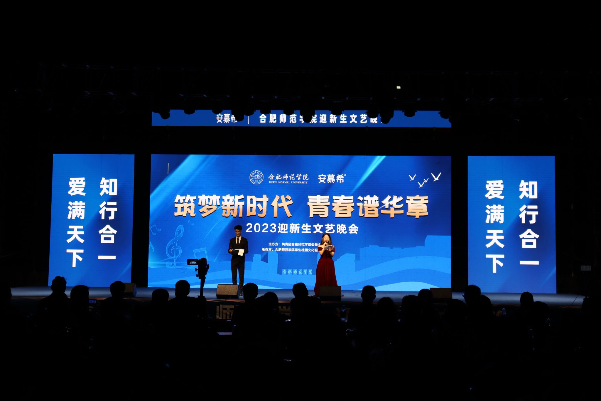 本网讯 9月26日晚,由院团委主办,学生社团文化服务中心承办的2023迎新生文艺晚会在滨湖校区足球场举行。此次晚会以“筑梦新时代,青春谱华章”为主题,带来了一场精彩绝伦的视听盛宴。院党委委员、副院长华银峰出席活动,滨湖校区综合管理办公室、学生工作部、院团委等单位负责同志,军训教官,2023级新生辅导员及2023级新生到场观看晚会。晚会通过“合师青年”官方抖音号和“学生社团文化服务中心”官方QQ 号同步直播。