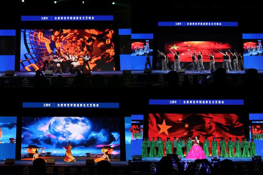 弦舞吉他社带来的歌曲串烧《想去海边》《给你一瓶魔法药水》在热烈浪漫的氛围中拉开晚会序幕。武术《龙腾虎跃》行云流水,武出中华儿女的飒爽与刚劲,展示出传统文化与现代文明的完美结合。朗诵《生如夏花》声情并茂,诵出“夏花之绚烂、秋叶之静美”。走秀《秀燃》展现了现代服装设计与四季交替之融合 。街舞《舞动青春》燃爆全场,展现出合师学子的朝气蓬勃的青春活力与昂扬向上的卓越追求。动漫秀《合而为一的光芒》用无尽的魅力感染了观众,将晚会推向高潮。舞蹈《汉韵九州》用青春的舞姿演绎出青年们对中华优秀传统文化的热爱。由大学生艺术团带来的合唱《中国军魂》《我的祖国》用醇厚美妙的歌喉传达了新时代青年对祖国一片忠诚的赤子之心。舞蹈《战》将表演和拉丁舞相结合,将战争时代女军人们保卫祖国的坚定意志表现得淋漓尽致。最后,晚会在滨湖校区辅导员老师带来的诗歌朗诵《你好,辅导员》中圆满落下帷幕。