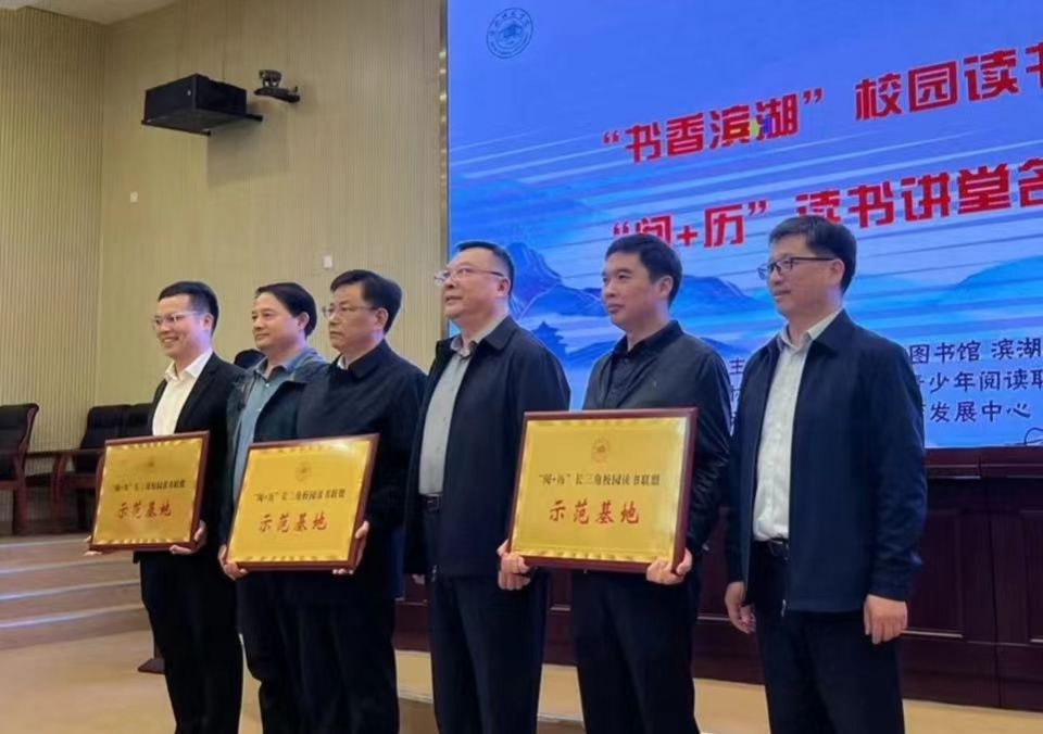 启动仪式上,徐成钢、华银峰、常树宝向巢湖市炯炀高中、黄麓师范学校、安徽省掇英轩书画用品公司等阅读共同体单位授予了“阅+历”长三角校园读书联盟示范基地的牌匾。安徽万品图书经营有限公司为beat365官网电子信息与集成电路学院、美术与设计学院“一站式学生书香社区”捐赠了图书。音乐学院江楠老师及团队、青轻行走读书会张春老师和文学院的同学们现场通过朗诵等艺术形式演绎了《赤阑桥》《岳阳楼记》《一路书香,一生阳光》等经典文学作品。