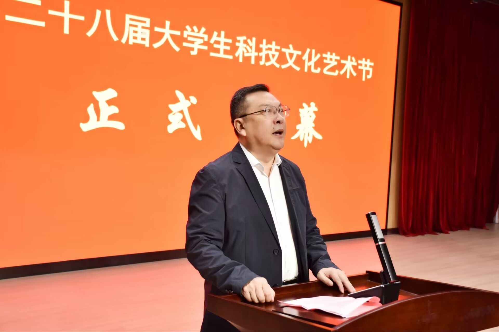 安徽省陶行知研究会会长、院党委书记徐成钢致辞并宣布大学生科技文化艺术节正式开幕