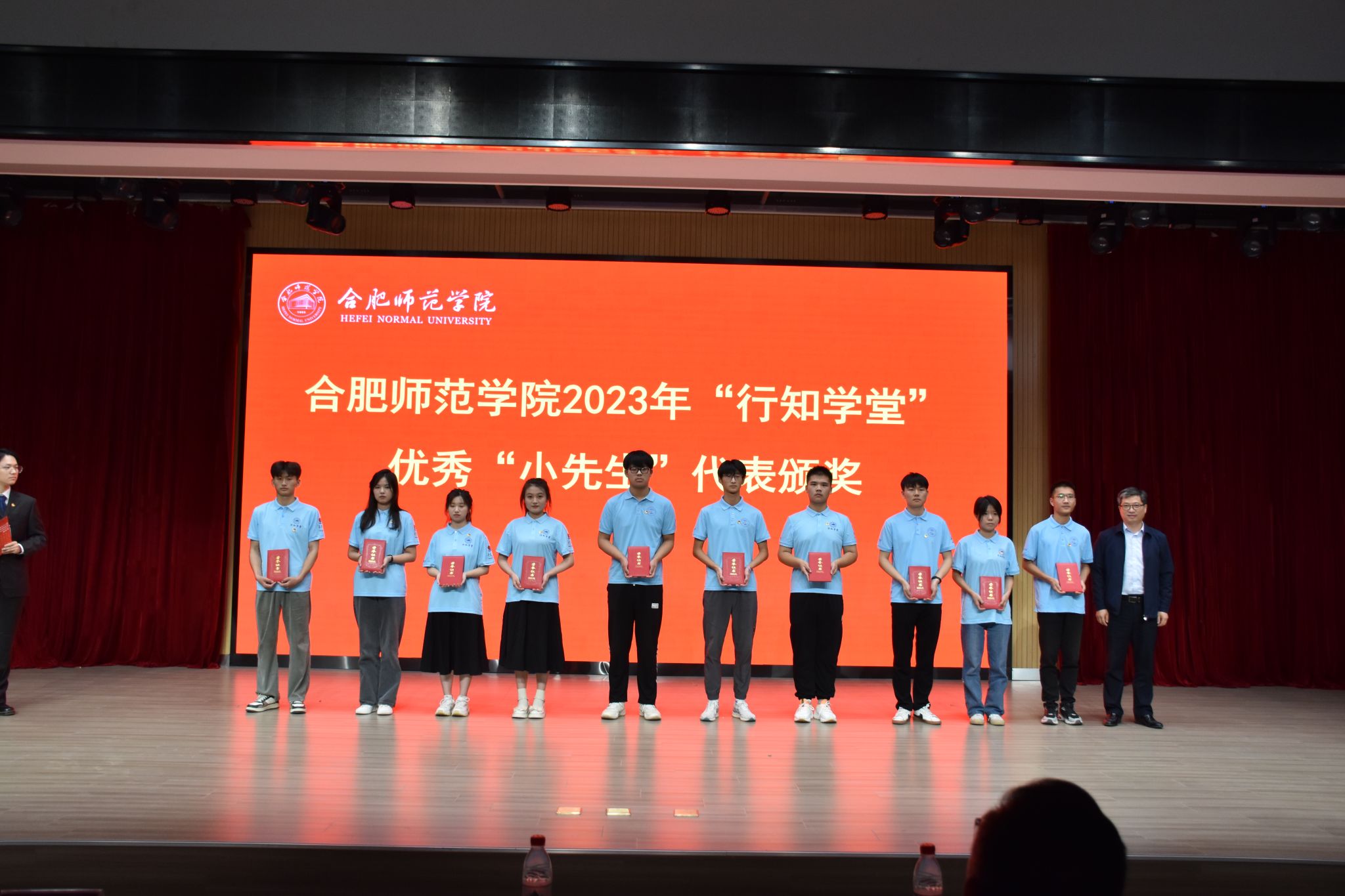 党委委员、副院长华银峰为2023年“行知学堂”优秀“小先生”代表颁奖