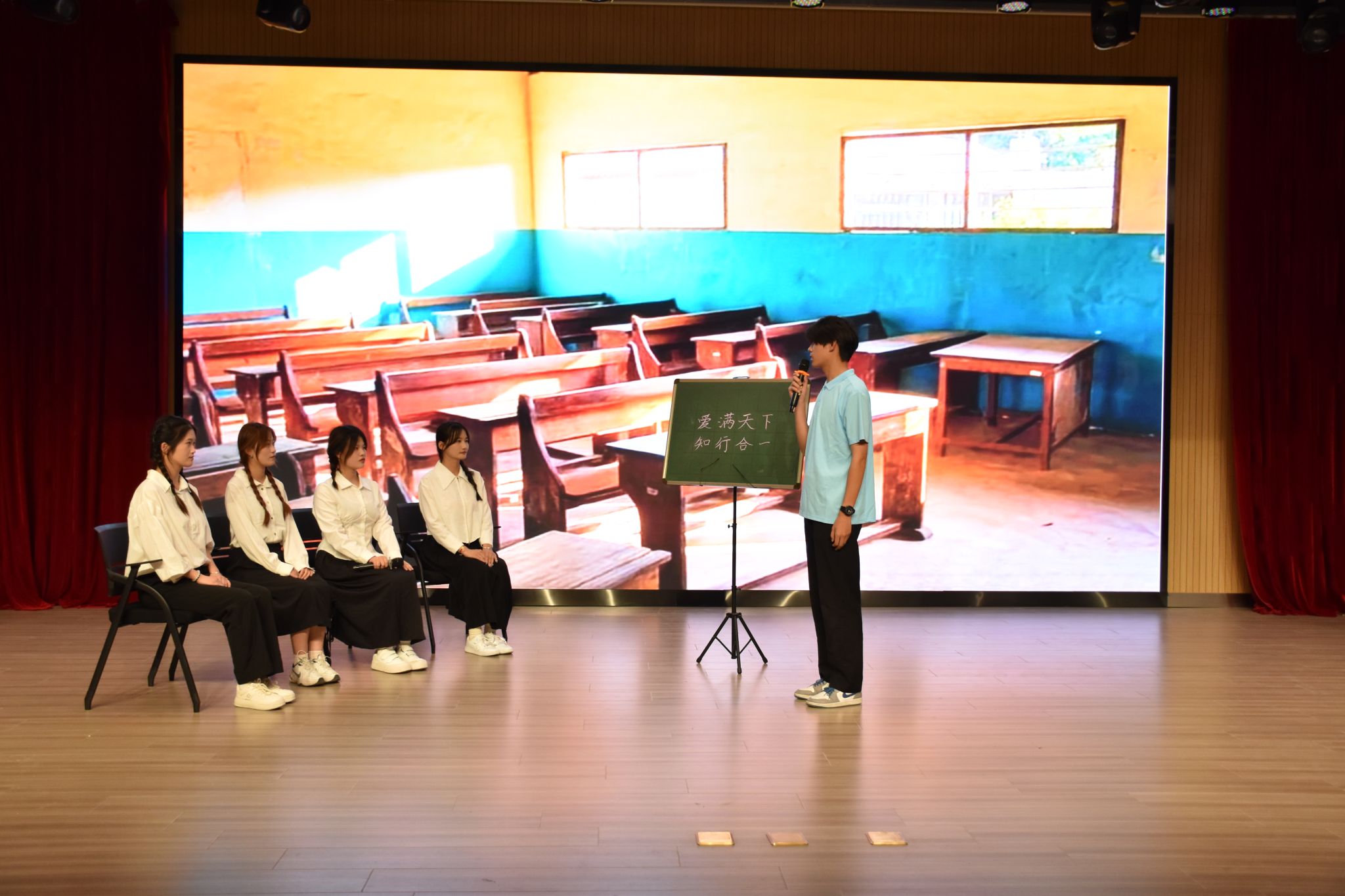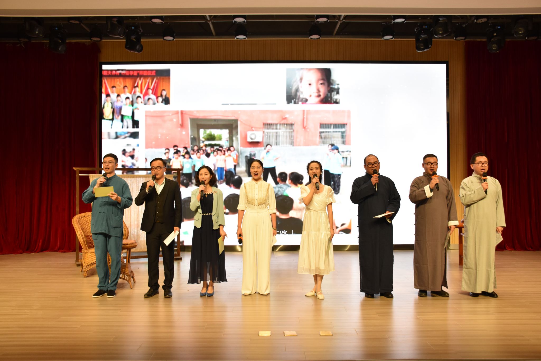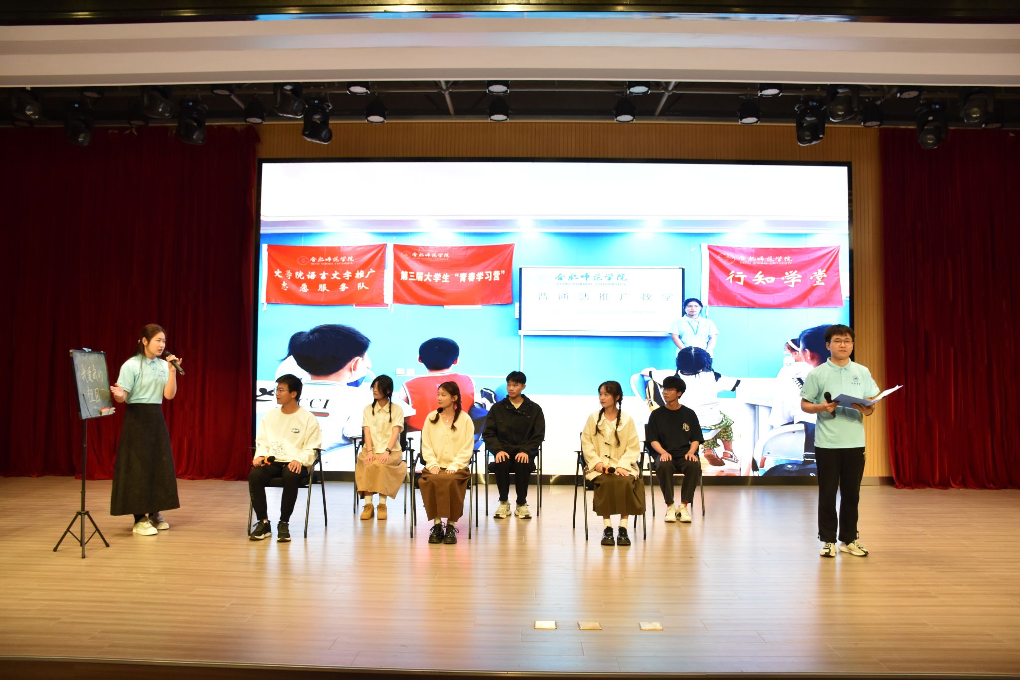 2023年陶行知教育思想诗文诵读会在校园之声广播台带来的《“陶”李天下,薪火相传》舞台剧中拉开了帷幕;文学院带来的《陶灯兴学,知火代代》在一幕幕生动表演中阐释“爱满天下,知行合一”的教育理念;音乐学院的节目《行知不辍,薪火永传》激励着合师学子承先生意志,开吾辈先锋;beat365在线唯一官网附属西安路学校的节目《陶行知教育故事两则》生动阐明了“生活即教育,社会即学校”的教育理念;教育与心理科学学院的节目《燃灯远山,守望未来》讲述了支教教师难舍师生情,最终选择留在大山里陪伴学生的感人故事;院团委学生组织的节目《陶风尽起,盈车嘉穗》展示了合师学子立志走“教人求真学做真人”教育之路的决心;院团委、生物与食品工程学院、文学院带来的《追求光,成为光,散发光》通过讲述三个“行知学堂”活动期间的小故事展现了“行知学堂”育人品牌的魅力;教工青轻读书会带来的《捧着一颗心来,不带半根草去》全景介绍了陶行知先生生平事迹和主要教育思想,为诵读会画上了圆满的句号。
