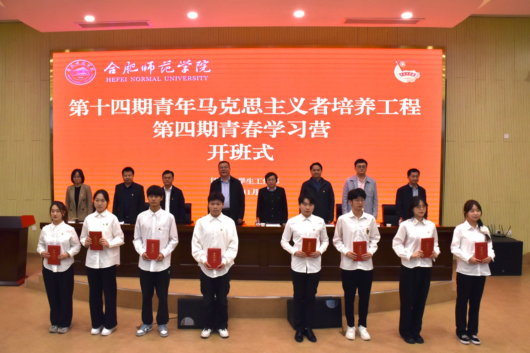 11月8日下午,学院第十四期青年马克思主义者培养工程、第四期青春学习营开班式于滨湖校区铭传楼学术报告厅举行。院党委书记徐成钢,院党委副书记梁立昌,组织部、宣传部、党政办、学生工作部、团委、滨湖校区综合管理办公室、马克思主义学院等单位负责同志,有关二级学院党团负责人、辅导员和本期青马工程和青春学习营全体学员参加开班式。锦绣校区学员在大学生活动中心分会场线上参会。
