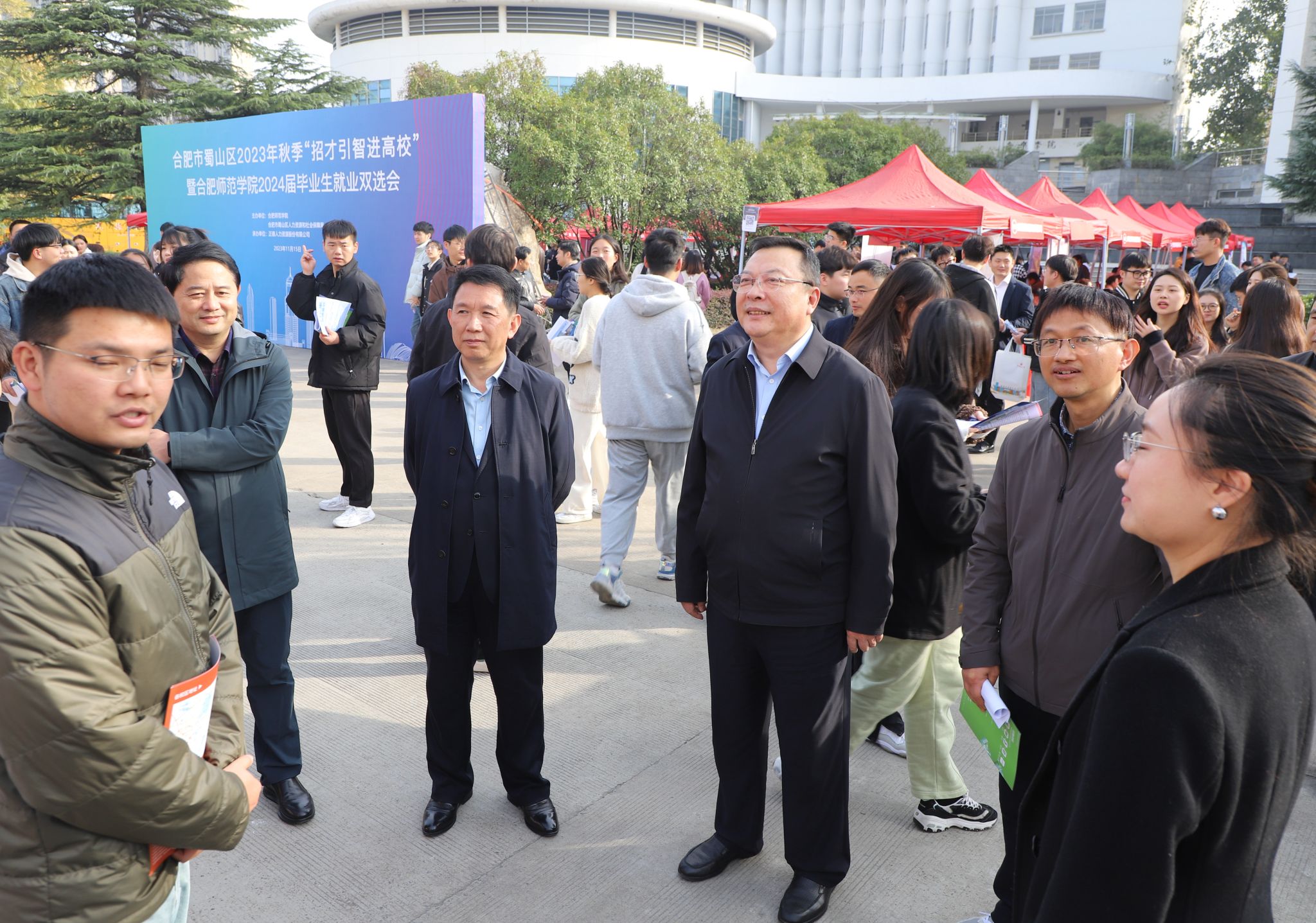 为切实做好2024届毕业生的就业工作,搭建用人单位与毕业生之间良好的供需平台,促进学生更高质量就业,11月15日下午,学院2024届毕业生秋季校园双选会在锦绣校区博约楼南广场举行。院党委书记徐成钢,党委副书记、院长方东玲,党委委员、纪委书记、监察专员徐文林,党委委员、副院长周端明等领导深入招聘会现场指导,并与用人单位代表和毕业生亲切交流。