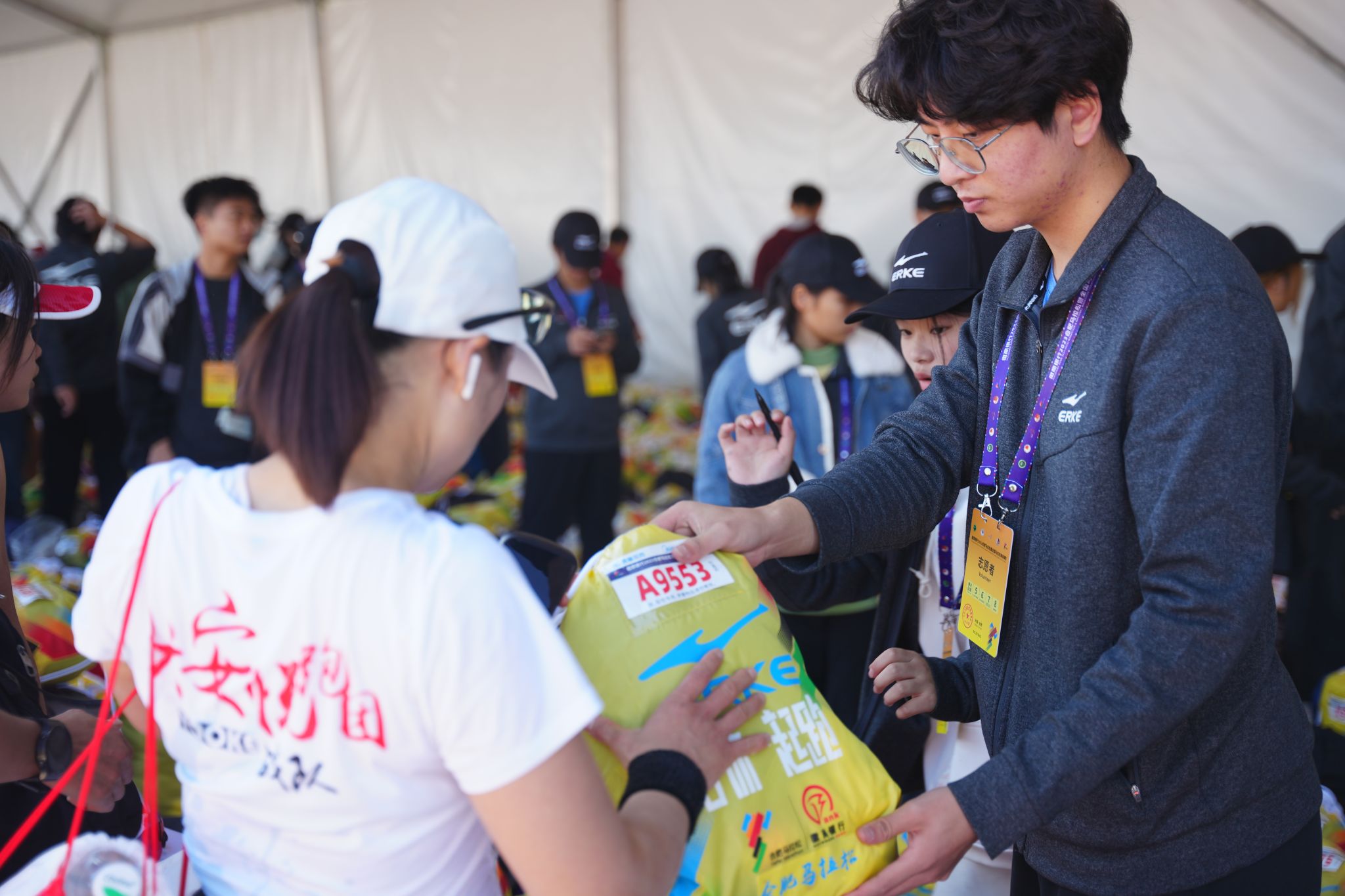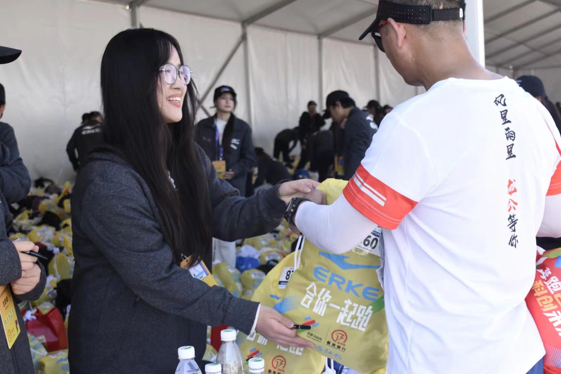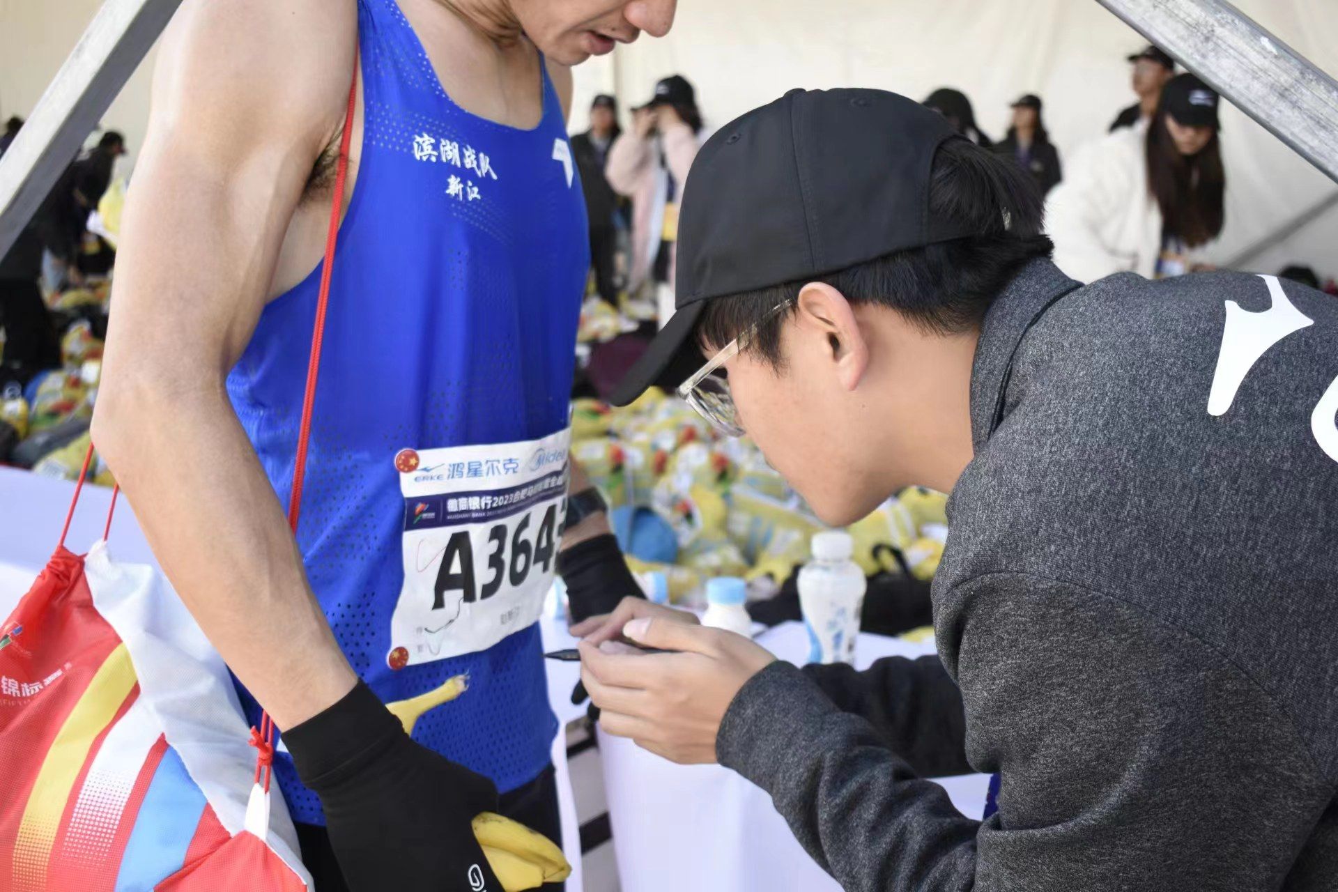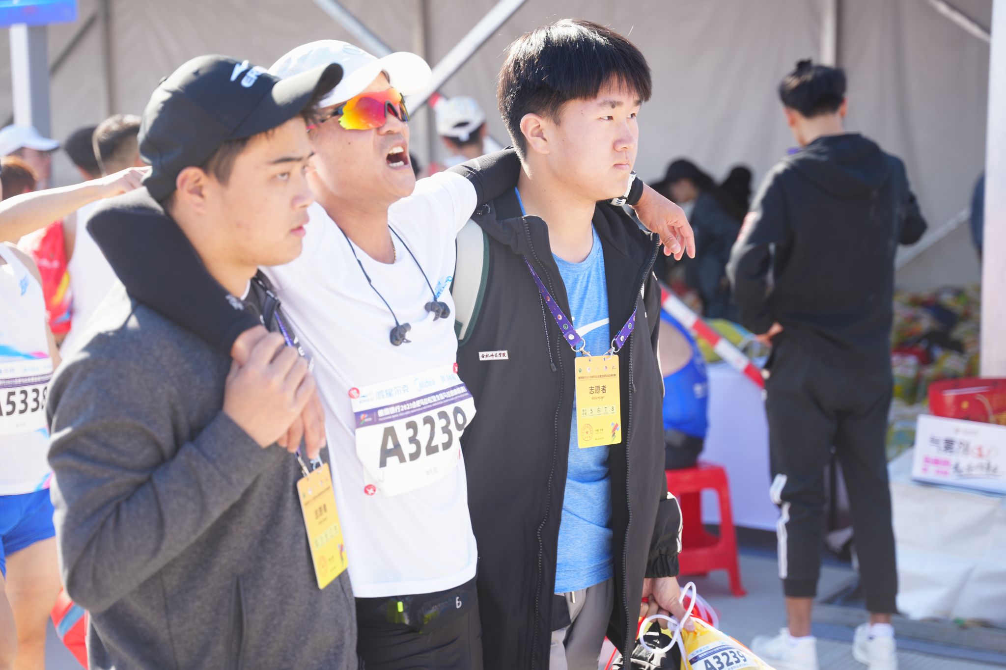 比赛正如火如荼地进行,赛道旁的观赛区聚集了众多前来应援观赛的市民观众,一位阿姨正与志愿者交谈:“马拉松考验的就是毅力和决心,所有参赛的选手都很了不起,我为他们加油打气。就像你们这些志愿者,为赛事紧密筹备、服务周到,正因有你们,这次的比赛才能举办的这么精彩完美,我真为国家拥有你们这些年轻人而感到骄傲和自豪!”顶着繁星点点出发,将满腔热情隐藏在一项项赛前准备工作中,工作在晴空万里的艳阳下,却依然在坚守岗位不言放弃。虽然未在赛道上,但是志愿者们仍然体现出马拉松精神,始终坚守“坚韧不拔、永不放弃、无私奉献”的伟大使命。