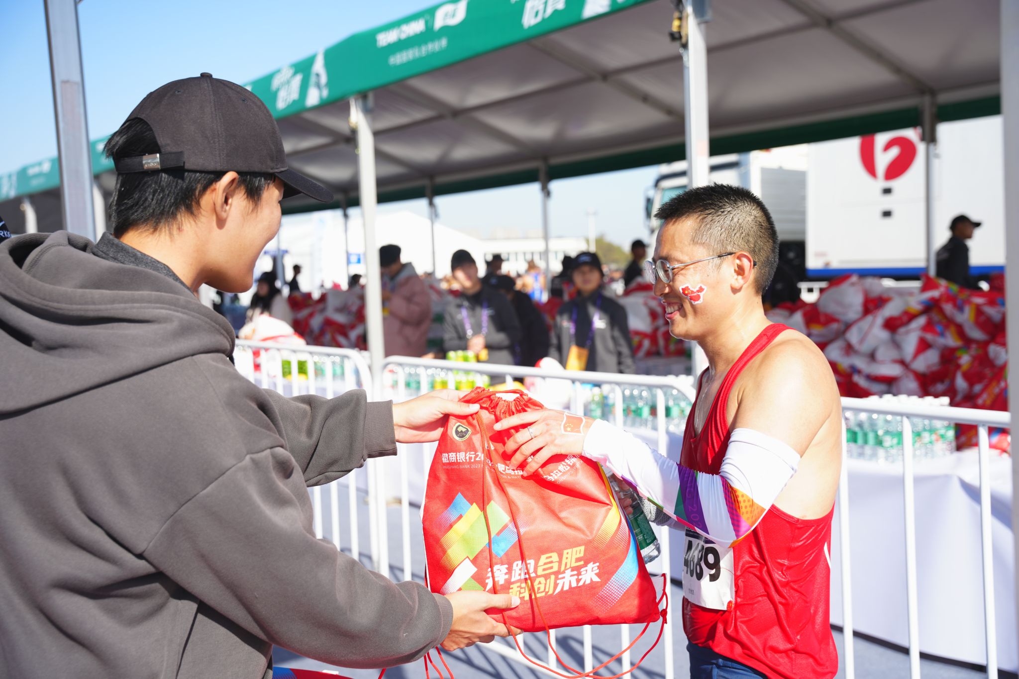 除了长达42.195公里的全程跑,大赛组委会还依据不同年龄、需求设置了半程跑、欢乐跑等各种赛制,力求做到全民参与,共同奔跑。“这不仅仅是一场单纯的体育赛事,更准确的来说,体育是一种文化,更是一种精神。带着孩子参加合马亲子跑,是希望能够在孩子心中种下运动的种子,让他们养成良好的生活习惯,茁壮成长。”赛场上有不少“一大一小”或“一家三口”的身影,他们是参加合马亲子跑的家庭。“合马亲子跑的活动很有意义,虽然只有短短的两公里,但对于亲子而言是一次非常奇妙而幸福的体验。”身处观赛区的一位母亲宠溺地抱着自己的孩子笑着说“这次是爸爸带着大宝参加亲子跑,我和小宝观战助威,等小宝大一些,希望以后有机会可以一家四口一起参加马拉松。”紧张焦灼的赛场气氛因为有了纯真可爱的孩子们的加入而变得轻松欢快,志愿者们帮助家长为孩子佩戴号码牌、整理衣物,家长与孩子们也热情地同志愿者们挥手打招呼,朝着每一位帮助自己的志愿者鞠躬感谢,赛场上,一组组家庭互相搀扶与支持,在一次次互相鼓励中变得更加团结紧密,亲子同心,共创和谐幸福的赛场氛围。