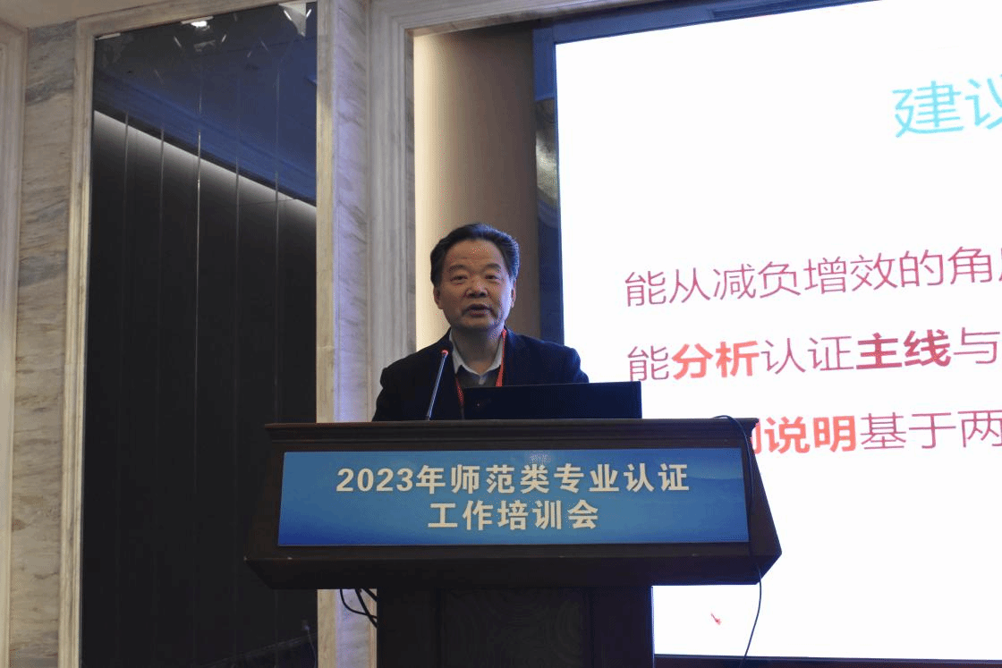 教育部师范专业认证核心专家和专家组长、河南师范大学张顺利教授以“培养目标与毕业要求的自评举证和持续改进”为题,结合相关案例分析,从培养目标与毕业要求在认证体系“两线”中所处的位置、认证全周期对培养目标与毕业要求的工作要求、培养目标及毕业要求自评举证的清单和重难点、自评自建工作的持续改进及问题分析等6个方面进行了交流分享。