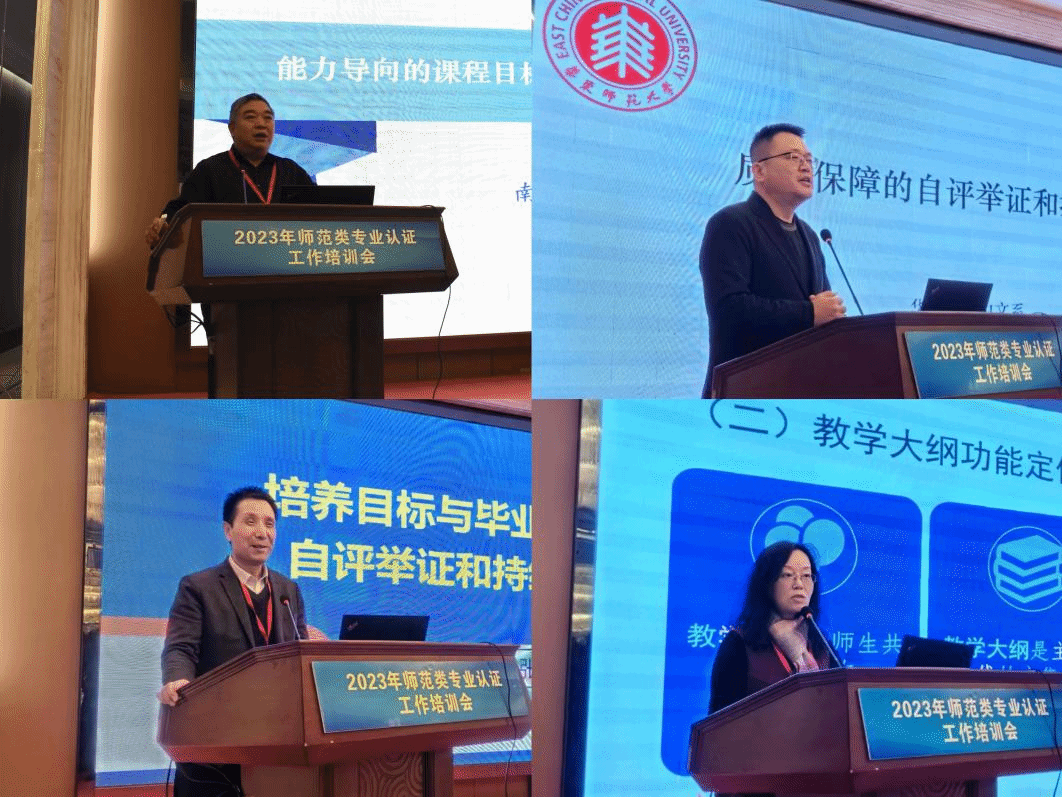 全国普通高等学校师范类专业认证专家委员会结论审定委员会委员、南京师范大学叶忠教授以“能力导向的课程目标达成评价与有效改进”为题,从准确理解面向产出,课程目标达成评价的“框架设计”和“举证要点”三个角度出发,对面向产出的教学体系、师范生能力素养的内容依据、毕业要求的分解指标点、自评举证和持续改进要点等方面进行了剖析。