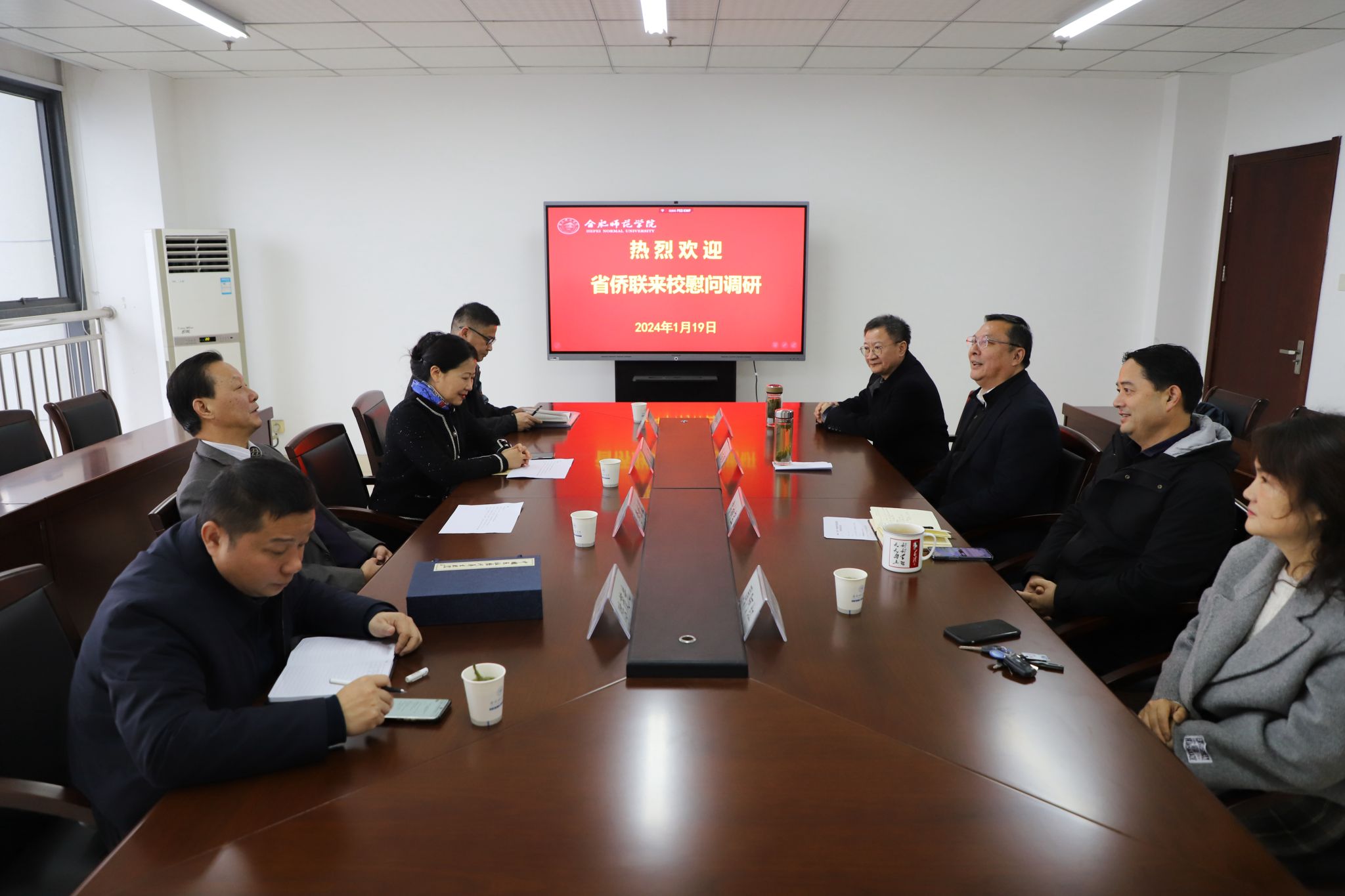 1月19日,安徽省侨联党组书记、主席李世蕴,省侨联党组成员、秘书长刘君一行来beat365官网慰问指导。党委书记徐成钢,党委委员、宣传部部长、统战部部长常树宝,校侨留联会长许俊农陪同慰问,并座谈交流。