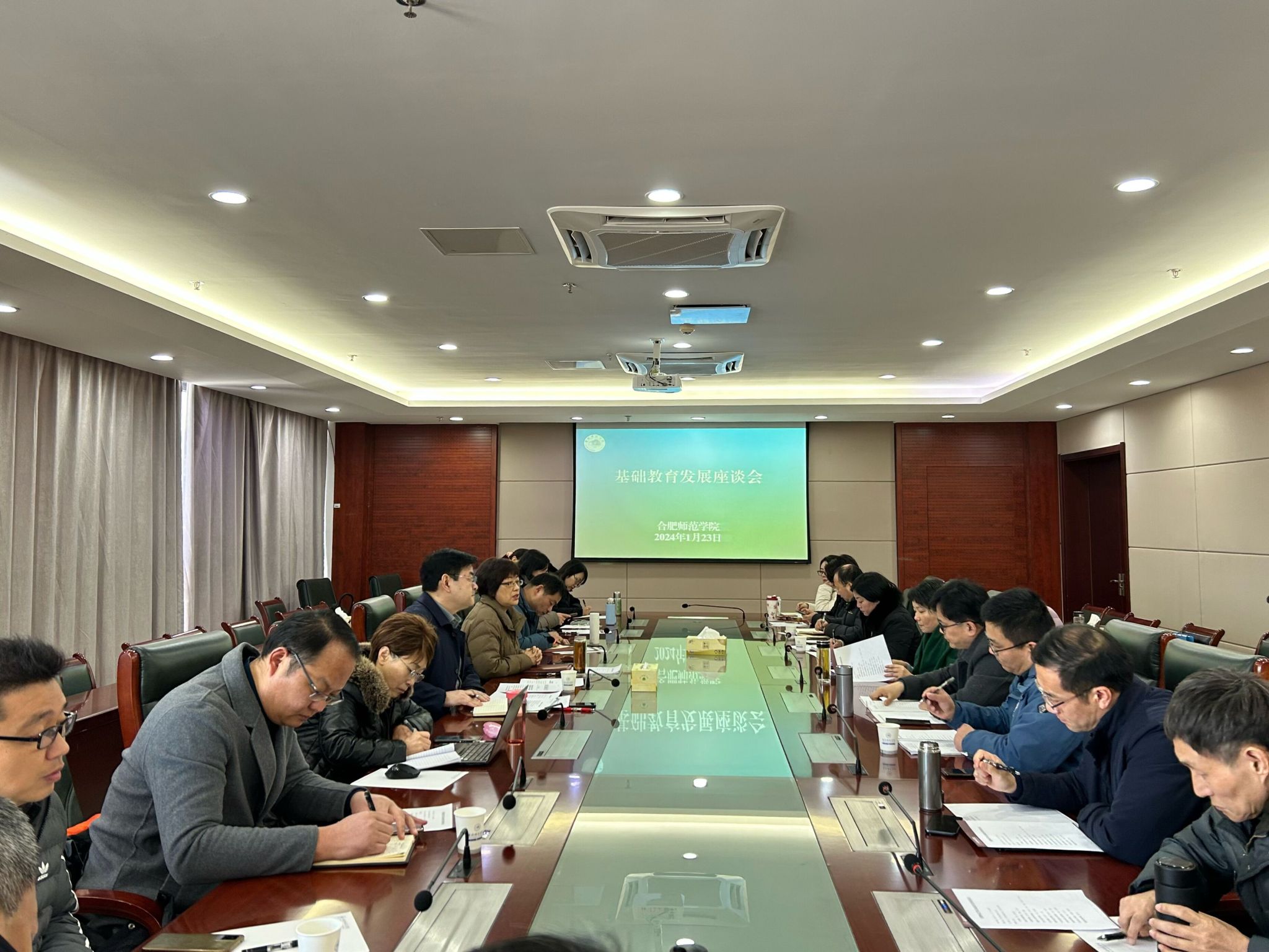 为进一步加强与基础教育领域的深度融合,更好地服务地方经济社会发展,1月23日上午,学院在锦绣校区召开2024年度基础教育发展座谈会。院党委副书记、院长方东玲出席会议,合肥基础教育研究院,附属西安路学校负责人以及相关二级学院学科教学论教师代表参加座谈。