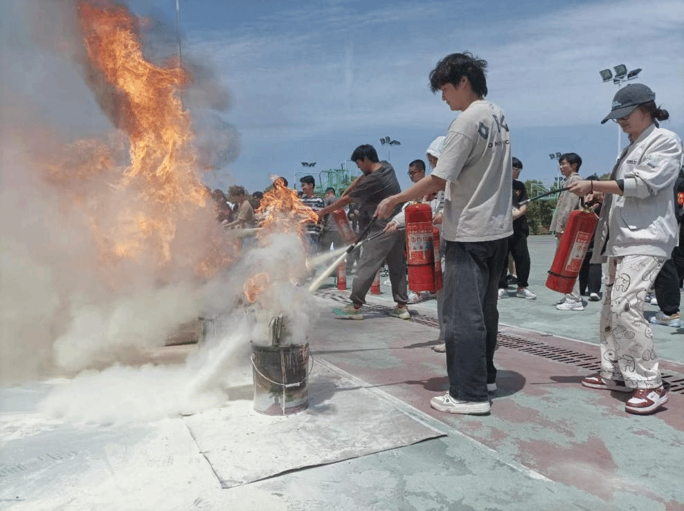 应急疏散演练结束后,巢湖市消防应急救援大队消防员现场进行消防安全培训,为师生们讲解了灭火器的使用原理、灭火相关注意事项、遇火险应急逃生的正确方法等消防安全常识,重点讲授了干粉灭火器、二氧化碳灭火器的使用方法和现场示范,内容丰富,深入浅出。师生观看完毕后,由学生代表出列分组进行灭火器材实操演练。通过 “灭真火”“速逃生”的真实体验,使每名师生都能成为“见火不慌、抬手就灭”的“准消防员”,进一步提升火灾应急处置能力。