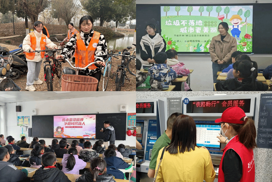 结合“学雷锋纪念日”,学习贯彻习近平总书记对深入开展学雷锋活动作出的重要指示精神,深入开展学雷锋志愿服务系列活动。教师教育学院团委赴黄麓中心小学开展“恒实学雷锋,道德树新风”系列志愿活动,青年志愿者们向小学生们宣传雷锋、共同传唱经典歌曲、绘制学雷锋板报,并帮助学生进行校园环境清洁。电子信息与集成电路学院团委开展“盲盒藏惊喜,志愿传真情”学雷锋活动,同学们以抽取“盲盒”的形式,积极投身环保知识宣传、校园清洁、防治流行病科普、心理健康支持等志愿服务中。化学与制药工程学院团委组织青年志愿者赴合肥南站,为旅客提供购票咨询、接送站指引等志愿服务。校学生会举办“规范校内车辆停放”志愿服务活动,青年志愿者们将乱停乱放车辆重新规范摆放,将“僵尸车”进行集中清理和存放,并积极宣传了电动车停放安全知识。青年志愿者联合会开展“3·24结核防治宣传周”志愿服务活动,疾控中心、校医院的专业人员和青志联志愿者们耐心为同学们讲解结核病的症状、传播途径、预防措施等相关知识,还开展了张贴爱心寄语、结核病知识问答、横幅签名、绘画预防结核病教育漫画等子活动。