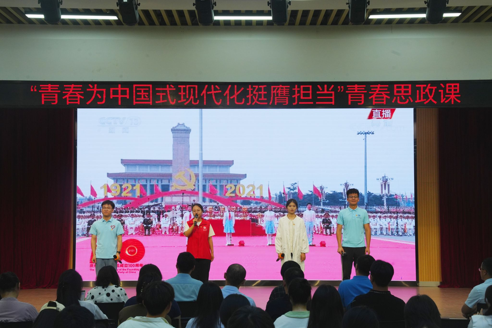 为深入学习贯彻习近平总书记五四重要寄语精神和对学校思政课建设重要指示精神,6月5日下午,学院于锦绣校区大学生活动中心举办“青春为中国式现代化挺膺担当”青春思政课活动。团省委二级巡视员、省少工委主任李丹云,团合肥市委副书记洪欣,团省委少年部二级调研员金菁,省学联驻会执行主席王梦瑶出席活动。院团委全体人员,二级学院团委书记,第十四期青年马克思主义者培养工程班学员、第四期青春学营学员、第四届青年学生宣讲团宣讲员、团属学生组织成员、学生社团负责人等300余人参加活动。