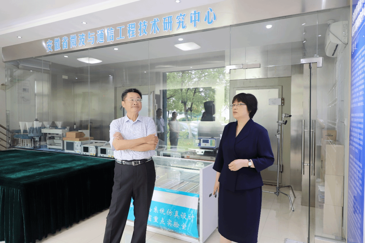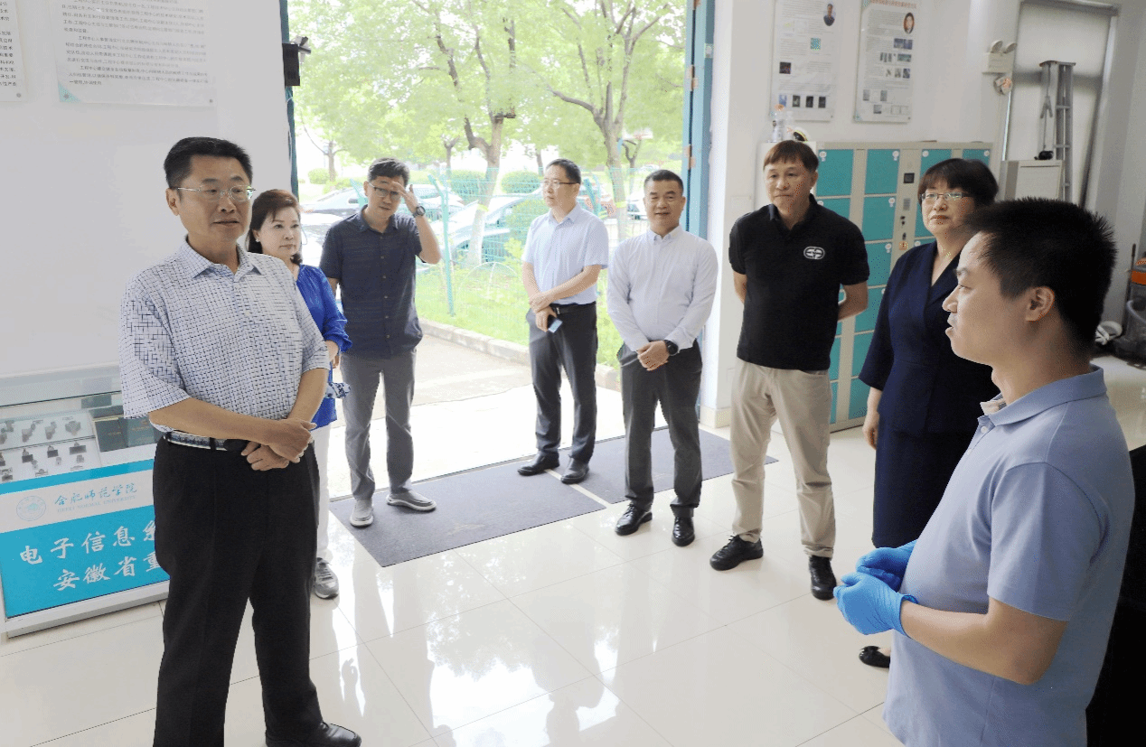 葛长林一行参观了安徽省微波与通信工程技术研究中心、微纳加工测试中心、青少年心理健康与危机智能干预安徽省哲学社会科学重点实验室等,对研究中心的科研实力和创新成果表示了高度赞赏,通过近距离观察微纳加工测试的操作过程,对这种高精度制造技术在提升产品性能和品质方面的潜力有了更深刻的认识,对学院在青少年心理健康与危机智能干预方面的研究与应用给予了高度评价。