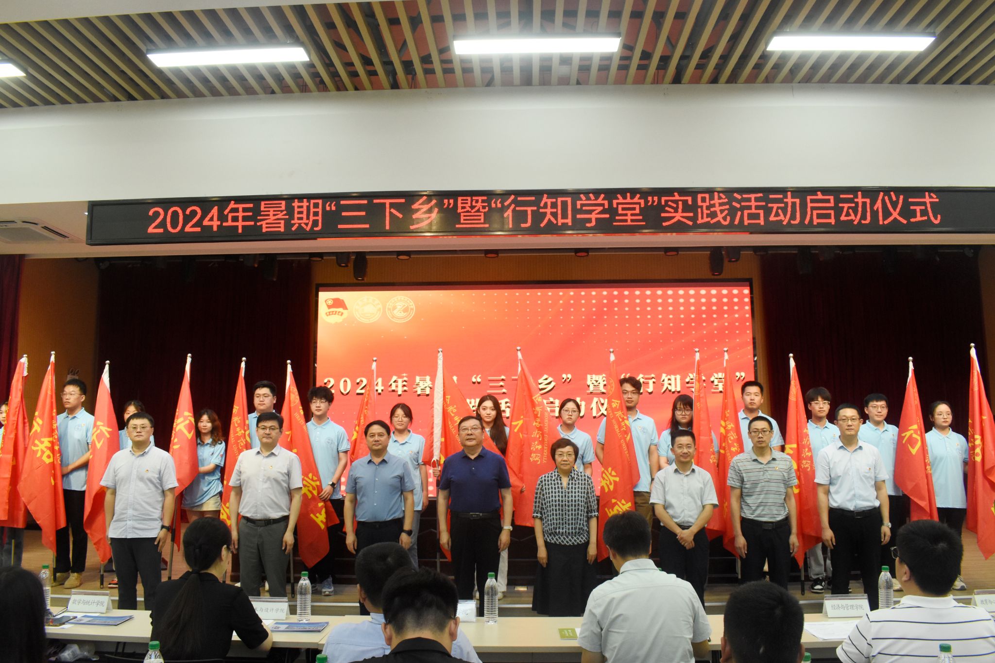 7月3日中午,学院在锦绣校区大学生活动中心举行2024年暑期“三下乡”暨“行知学堂”实践活动启动仪式。院党委书记徐成钢、院党委副书记梁立昌,组织部、宣传部、党政办公室、学生工作部、教务处、研究生处、团委等单位负责人,各二级学院党委(党总支)书记、分团委书记、全体辅导员,行知学堂“小先生”代表300余人参加启动仪式。