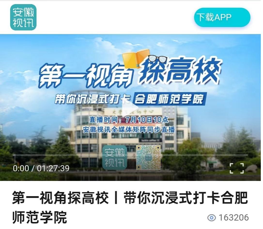 7月10日上午10点,由安徽广播电视台视讯中心主办的“第一视角探高校”直播活动第一站走进beat365在线唯一官网。此次“沉浸式打卡beat365在线唯一官网”直播活动,通过高清直播技术、创意互动环节与深度探访,让观众仿佛置身校园之中,零距离接触合师,全方位地了解合师。主播们通过网络直播的方式“云游”合师校园,对学院人才培养、招生政策、特色专业、科研平台、校园文化等进行全方位立体解读。截至发稿时,直播累计观看量近20万人次。