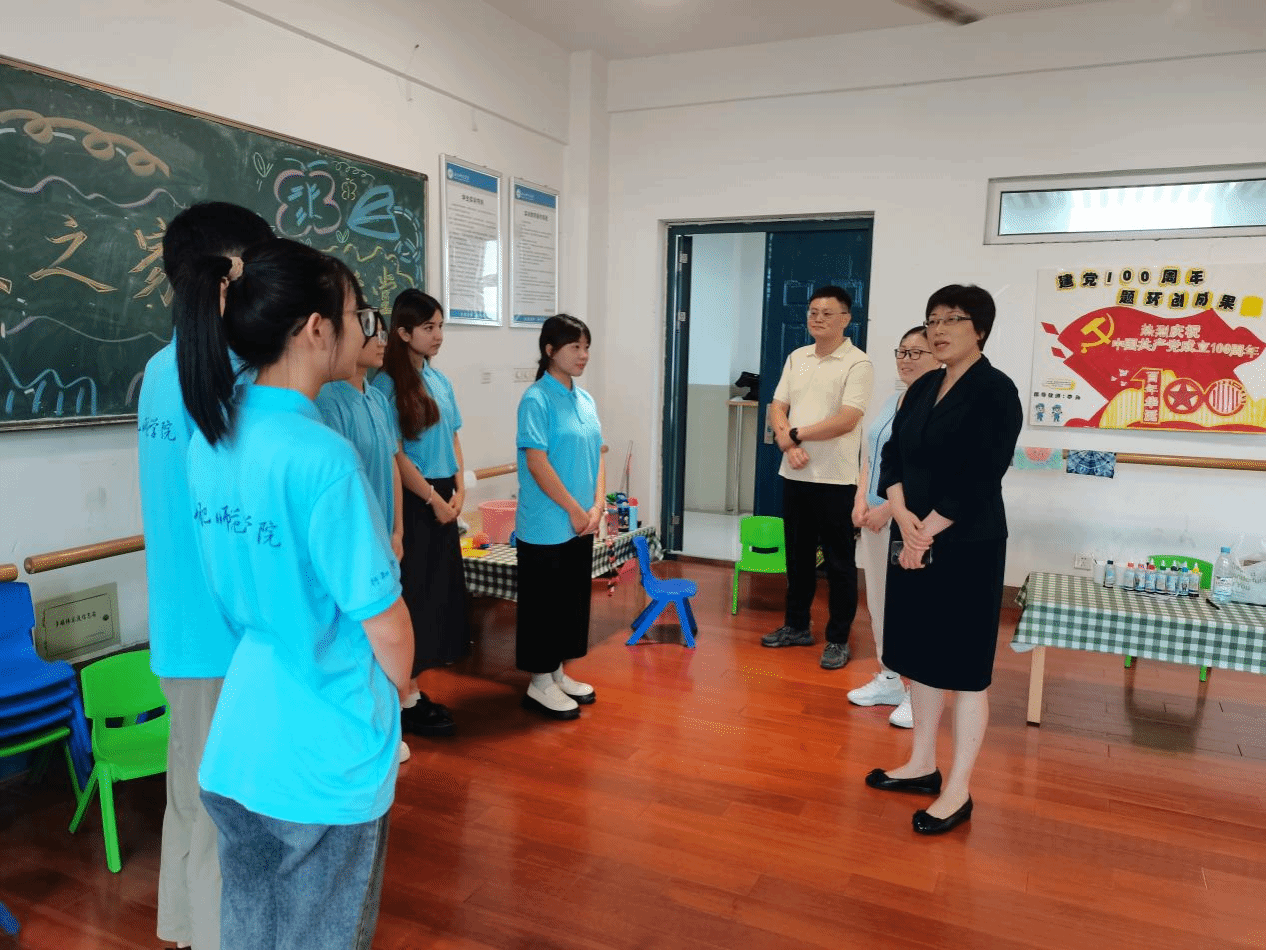 课后,方东玲详细询问了小先生课程情况和活动安排、教学收获和实践感悟,勉励小先生要珍惜实践锻炼机会,并提出三点希望:一是要将行知学堂作为锤炼教学技能的重要实践平台,不断创新教学方法,丰富教学内容,努力提升专业素养;二是要勤于思考、善于总结,认真分析不同年龄段儿童的特点,开发有针对性的课程,对小学员们做到因材施教;三是要突出专业特点,积极丰富课内活动,为小学员们带来既有意义又充满活力的暑期生活。
