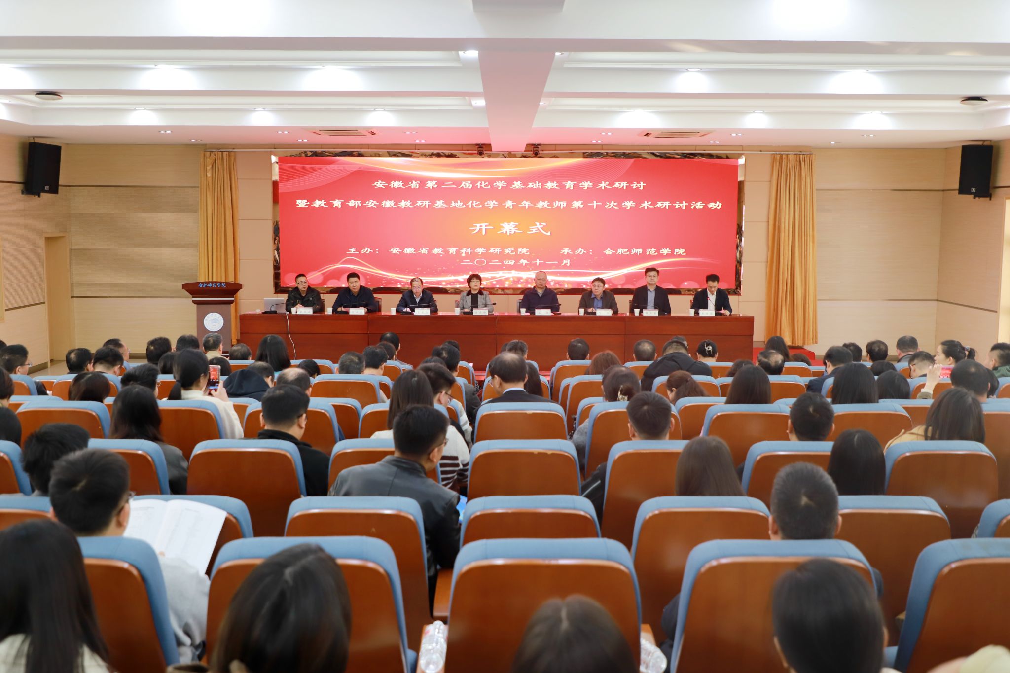 11月6-7日,由安徽省教育科学研究院主办,我院化学与制药工程学院承办的安徽省第二届化学基础教育学术研讨暨教育部安徽教研基地化学青年教师第十次学术研讨活动在学院学术报告厅举行。此次活动主题是“化学基础教育未来方向”,来自全省各市、区(县)化学教研员、安徽省化学青年教师学术研讨中心组成员、教育部普通高中化学学科安徽教研基地实验校代表,以及各市化学骨干教师共260多人参加了会议。