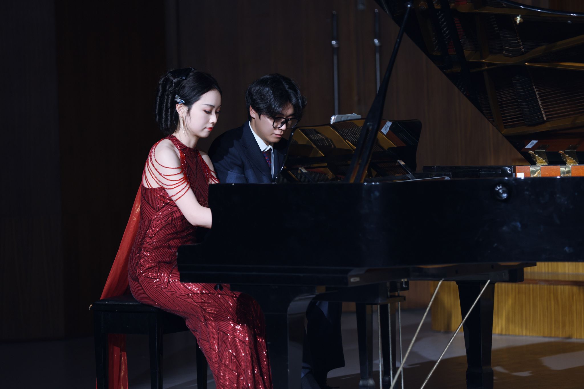本场音乐会以“传承红色文脉,奏响新年华章”为主题,为现场观众带来了一场沉浸式的“音乐盛宴”,也展现了音乐学院师生对学校的热爱与祝福,对新年的信心与期待。(音乐学院:陆伟)