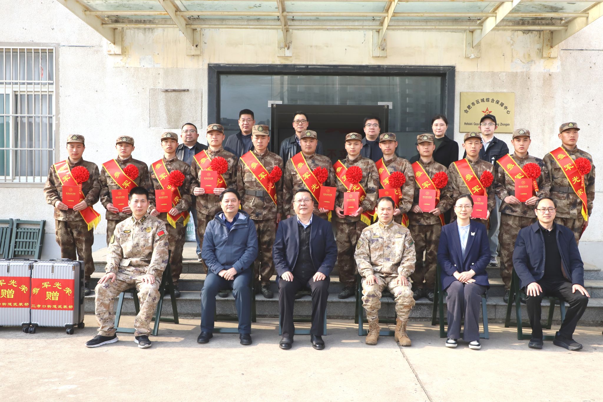 徐成钢向光荣参军入伍的同学表示祝贺,对庐阳区人武部、三孝口街道对学院征兵工作的大力支持表示感谢,对即将入伍的同学们提出三点希望:一要铸牢忠诚品格,传承红色基因。把听党指挥刻进骨血,把红色血脉化作行动自觉,铸牢思想防线,让忠诚成为青春的底色。二要发挥专业优势,勇当强军先锋。努力成为高素质专业化新型军事人才,用智慧为科技强军添砖加瓦,挺膺新时代军人的担当。三要磨炼坚韧意志,书写青春华章。把个人理想融入国防事业,在保卫祖国、建设边疆的征程中践行“请党放心、强国有我”的铮铮誓言。