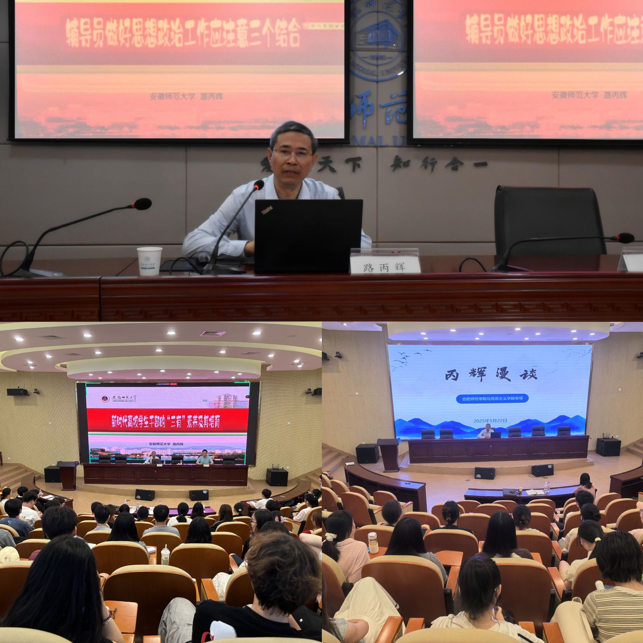 5月22日,党的二十大代表、全国优秀共产党员、全国先进工作者、全国模范教师、全国最美思政课教师、全国师德标兵、教育部师德师风建设专家委员会委员、安徽师范大学马克思主义学院博士生导师路丙辉教授应邀来校为师生作报告。