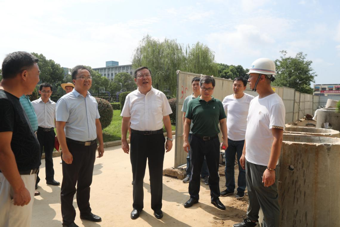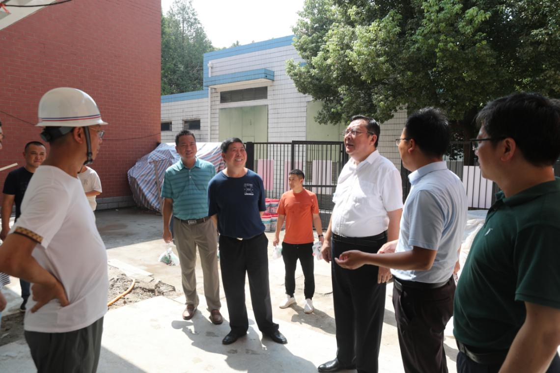 徐成钢一行先后来到锦绣校区管网改造施工、留学生公寓改造施工现场,听取了相关部门和施工单位关于工程建设情况的汇报,徐成钢深入工地、进楼房,并与施工人员亲切交谈,实地检查了施工进展、工程管理、工程质量及施工安全等工作情况。他对暑假期间工程改造项目给予了肯定,要求后勤处(基建办)、监理单位和各施工单位精心组织、规范施工,确保施工质量,按时完成暑期各项施工任务。要突出安全底线,确保安全施工。要强化责任担当,高标准、严要求,有力有序扎实推进维修改造工作顺利进行。