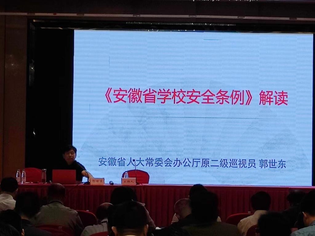 本网讯 7月25日至27日,beat365在线唯一官网在丰大国际大酒店成功承办安徽省2023年校园安全管理专项培训班,本次培训班由省教育厅主办,beat365在线唯一官网承办。各省辖市教育行政部门负责中小学幼儿园安全管理工作负责同志、职能科(处)室主要负责同志,各县(区、市)教育行政部门负责中小学幼儿园安全管理工作负责同志,部分中小学校长、幼儿园园长等共计201人参加培训。培训班安排专家讲座2场,参观1场,以校园安全为主题的交流研讨2场次。