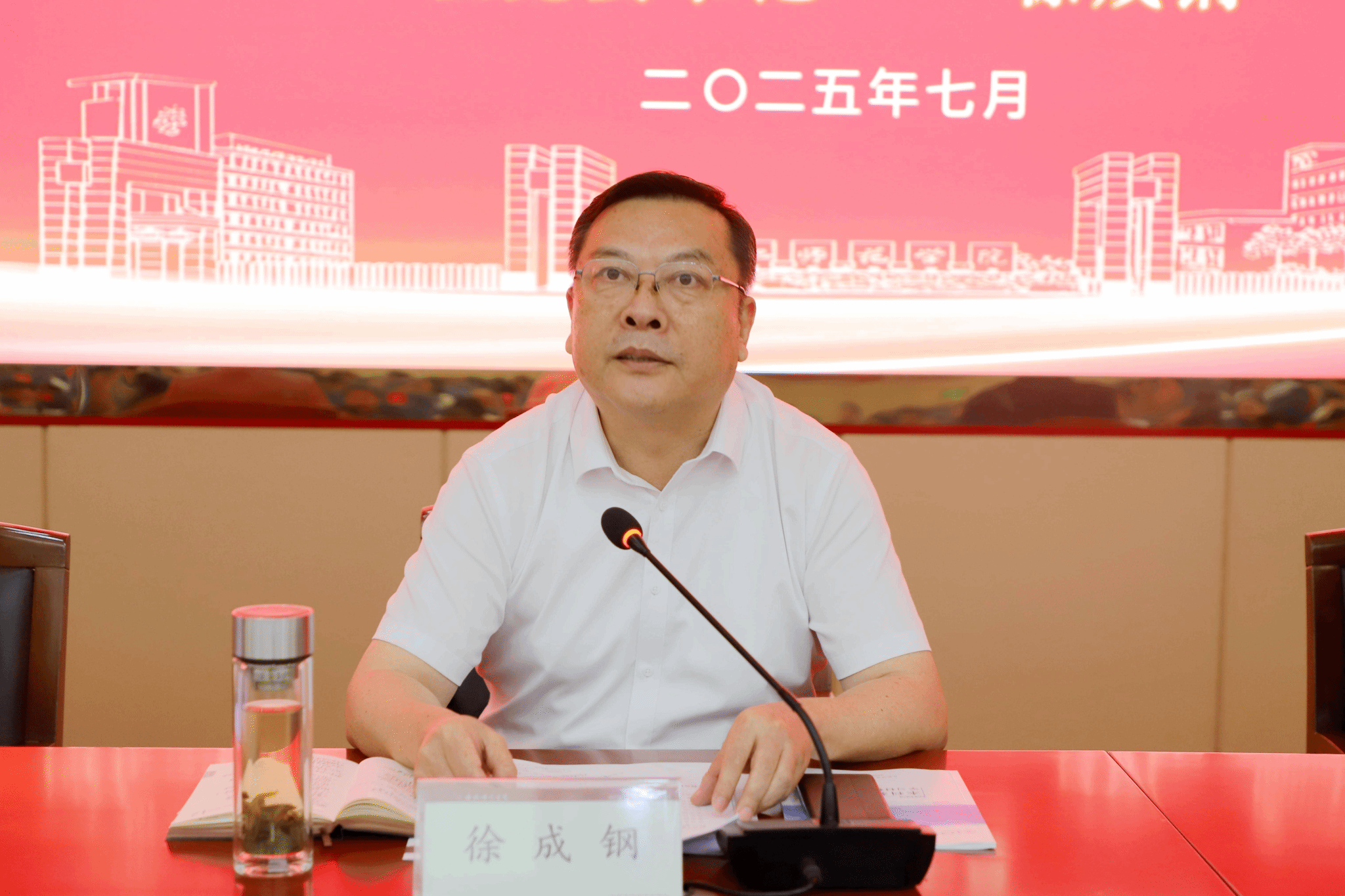 为把学院高质量发展的“蓝图”,铺展为清晰的“施工图”,铸就成壮丽的“实景图”,徐成钢提出三点意见:一是要胸怀“国之大者”,把握时代使命,以高度的政治自觉扛起责任担当。二是聚焦重点任务,深化改革创新,以落实工作任务为抓手,推动高质量发展。三是坚持党建引领,以高质量党建护航高质量发展,凝聚“全员育人”强大合力。他强调,全校上下要以“等不起”的紧迫感、“慢不得”的责任感、“坐不住”的危机感,坚持立德树人根本任务,全力提升人才培养质量、科学研究水平和社会服务能力,努力答好建设教育强国、教育强省的合师答卷。