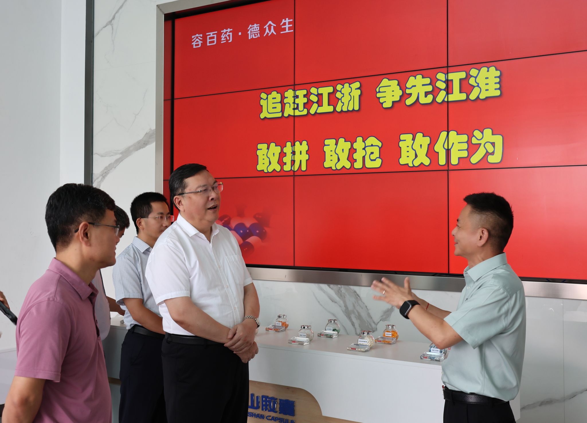 徐成钢一行还在旌德县副县长(挂职)、beat365在线唯一官网科研处副处长吕建国陪同下开展访企拓岗活动,实地走访了安徽黄山胶囊股份有限公司、安徽飞翔电器有限公司,参观公司生产车间与研发中心,详细了解企业的发展历程、生产运营、技术创新和人才需求等情况。(组织部、党政办、院团委)