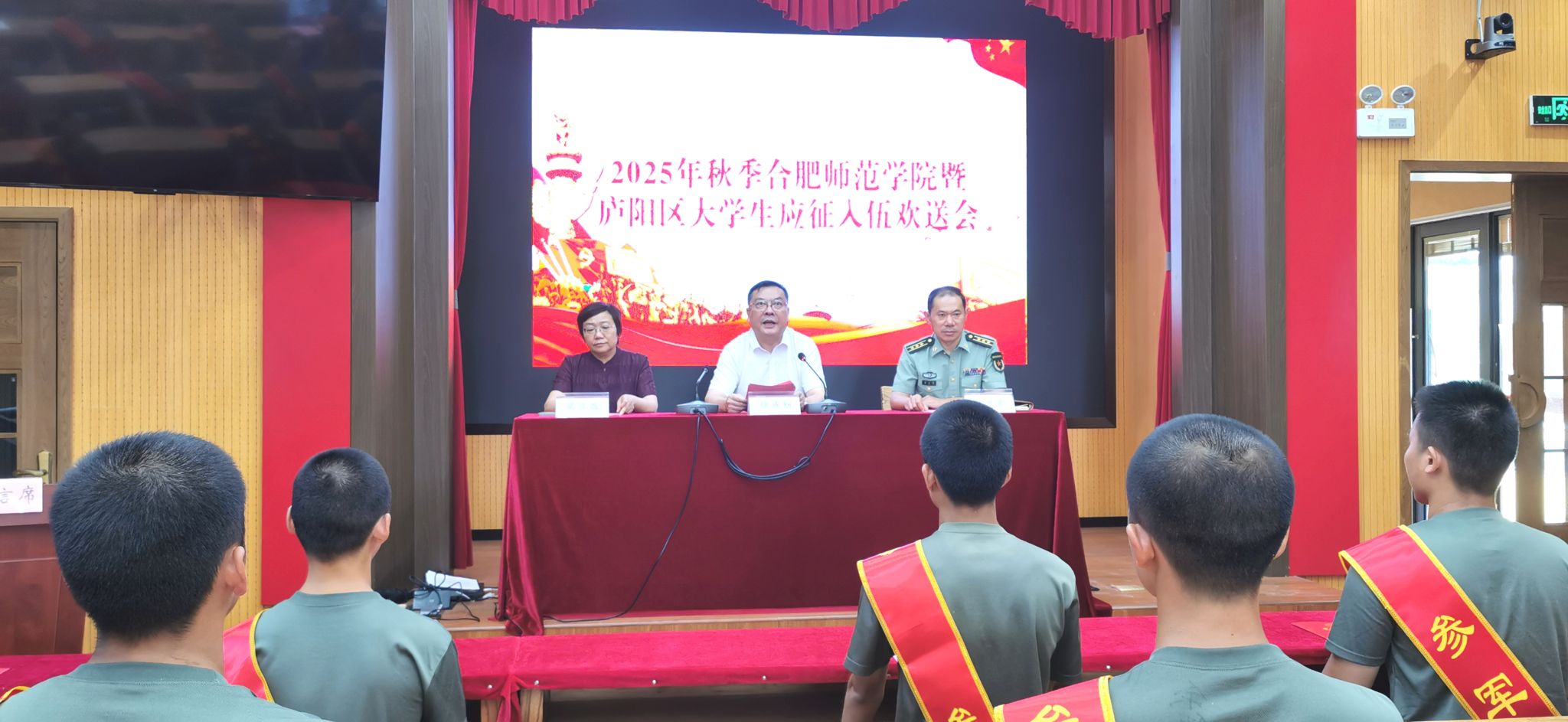 9月12日下午,学院2025年秋季应征入伍毕业生欢送会在庐阳区委党校礼堂举行。院党委书记徐成钢,院党委副书记梁立昌,合肥市庐阳区人武部部长韩方景,庐阳区三孝口街道人武部部长刘志杰,学院相关部门负责人、二级学院党委书记、辅导员代表齐聚一堂,欢送即将踏上军旅征程的2025年秋季应征入伍毕业生。欢送会由院党委副书记梁立昌主持。