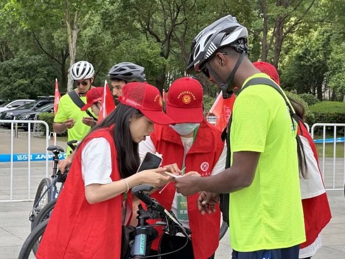 来自文学院2022级汉语言文学专业的张进是开幕式及嘉年华组的一名志愿者,承担着保障物资供应及与外国友人对接的任务。“通过与外国友人的沟通,我深切地感受到了被需要的价值,同时我也看到许多小朋友来参赛,他们对骑行的热爱和信念也深深地打动了我。让我觉得在帮助别人的同时提升自己是一件非常有意义的事!并且也让我感受到志愿服务不仅是一种社会责任,更是一种自我成长。”张进如是说。