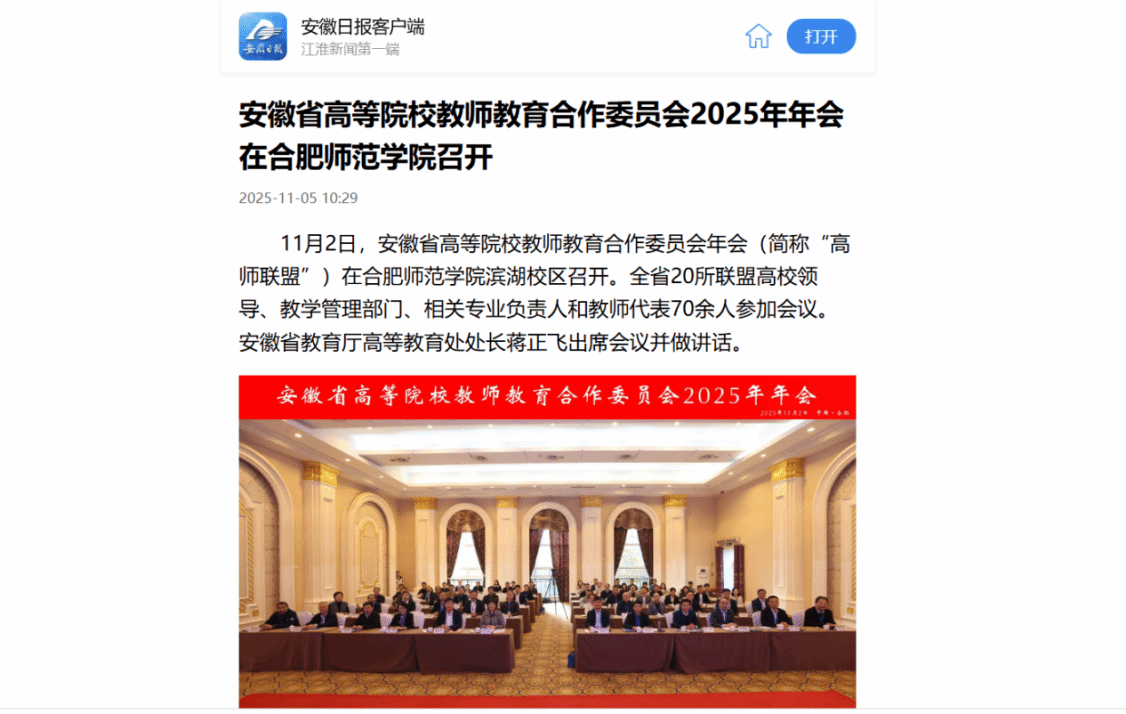 安徽日报报道《省高校教师教育合作委员会2025年年会在beat365在线唯一官网召开》