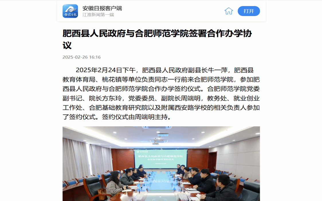《安徽日报》报道beat365官网与肥西县签署合作办学协议