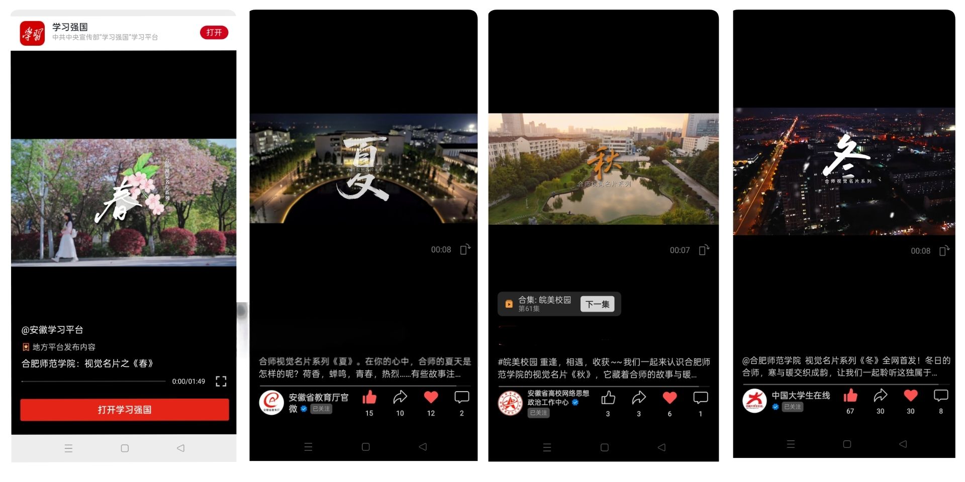 合师视觉名片“四季”在中国大学生在线、学习强国等平台广泛传播