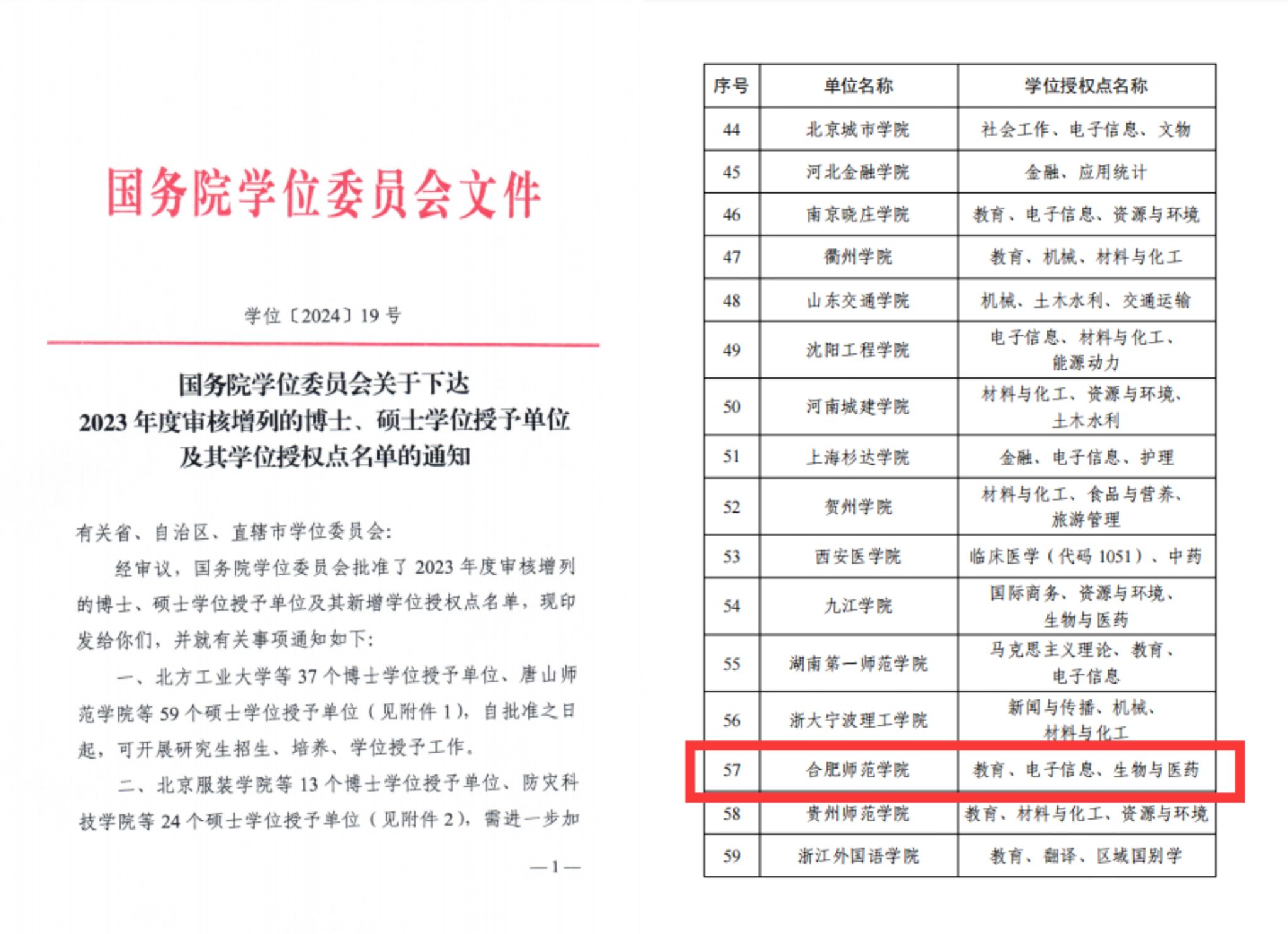 国务院学位委员会《关于下达2023年度审核增列的博士、硕士学位授予单位及其学位授权点名单的通知》