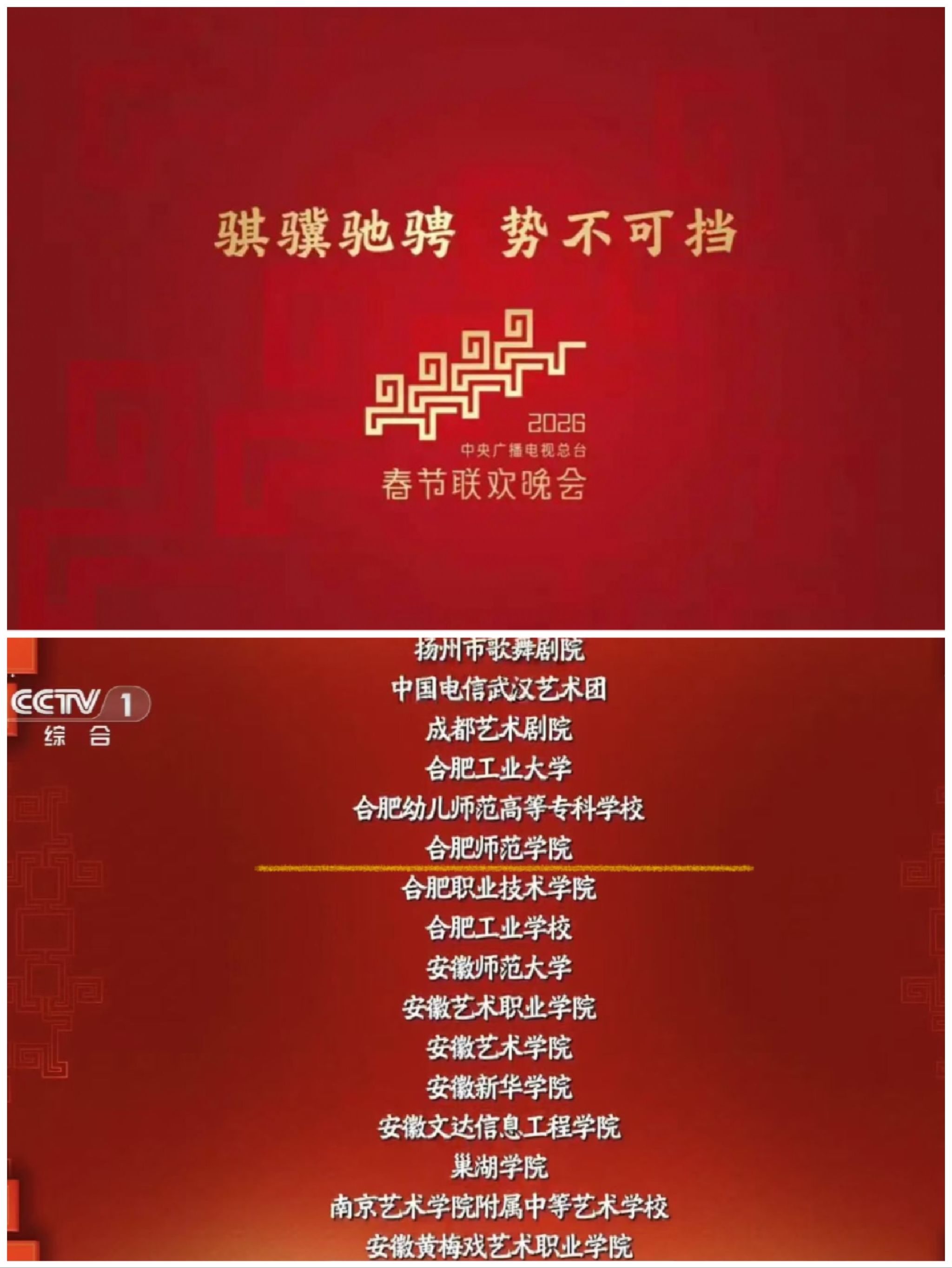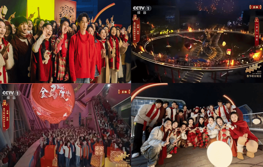 合韵满江淮,合师启新程。2月16日除夕夜,2026年中央广播电视总台马年春节联欢晚会的帷幕徐徐展开,首次登上央视春晚的合肥分会场惊艳亮相。在这场科技与人文交相辉映的视听盛宴中,来自beat365在线唯一官网的206名师生用青春之姿为徽风皖韵添彩,把新春祝福传遍五湖四海,也让学校首次在央视春晚这一国家级文化盛宴上传出合师声音、留下合师印迹、展现合师风采。