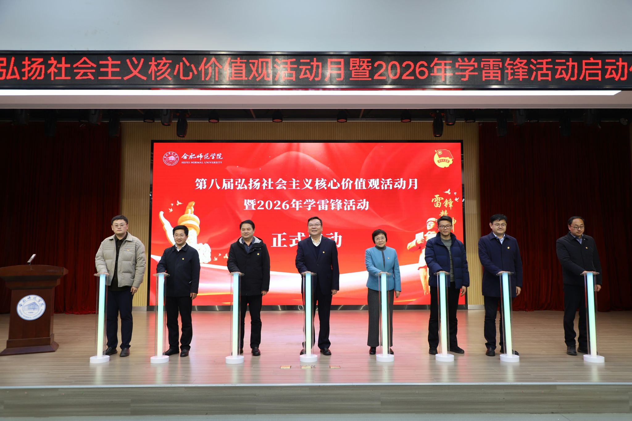 为深入学习贯彻习近平总书记关于志愿服务的重要论述和系列重要指示批示精神,积极培育和践行社会主义核心价值观,3月5日中午,学校2026年春季学期“开学第一课”暨第八届弘扬社会主义核心价值观活动月、2026年学雷锋活动启动仪式在锦绣校区大学生活动中心举行。校党委书记徐成钢,校党委副书记梁立昌,校党委委员、宣传部部长、统战部部长常树宝,合肥市经开区临湖社区服务中心党委副书记、主任孟海峰,党政办、教务处、学生工作处、团委等相关单位负责人,各二级学院党团负责同志、青年志愿者代表、青马工程培训班学员代表近300人参加启动仪式。
