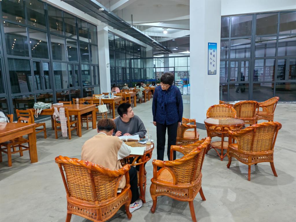 方东玲走进教室,走进学生中,详细查看了学生上课情况。走进课堂,认真听评了文学院老师主讲的大学写作课程,对其深厚的教学功底、生动活泼的授课方式表示赞扬,同时要求教师要注重课程思政的引领作用,引导学生正确认识事物,培育平和积极的心态。