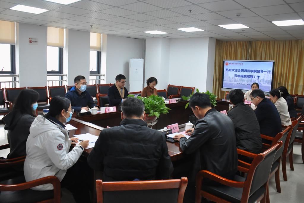 合肥职业技术学院党委书记王杰才、党委副书记金飞燕,安徽城市管理职业学院院长刘瑾、副院长聂宗瑶,安徽工业经济职业技术学院副院长崔景茂、黄雪飞等热情接待周端明一行,并汇报了联合培养毕业生就业工作推进情况。