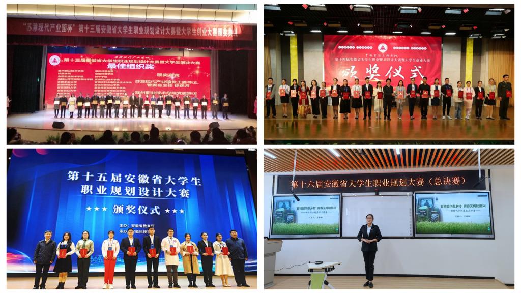 本网讯 近年来,学院以全省“三全育人”综合改革试点高校建设为契机,落实立德树人根本任务,着力深化就业育人,取得积极成效。近日,由省教育厅主办的第十六届安徽省大学生职业规划大赛总决赛落下帷幕,来自全省23所本科院校、34所高职专科院校的57名选手参加了总决赛。经过激烈角逐,学院选送的参赛选手——教师教育学院2020级小学教育专业王雅娴和她的参赛项目《甘将韶华献乡村青春无悔助振兴》获得一等奖,学院荣获优秀组织奖,这也是学院连续四届蝉联全省大学生职业规划大赛一等奖和优秀组织奖。