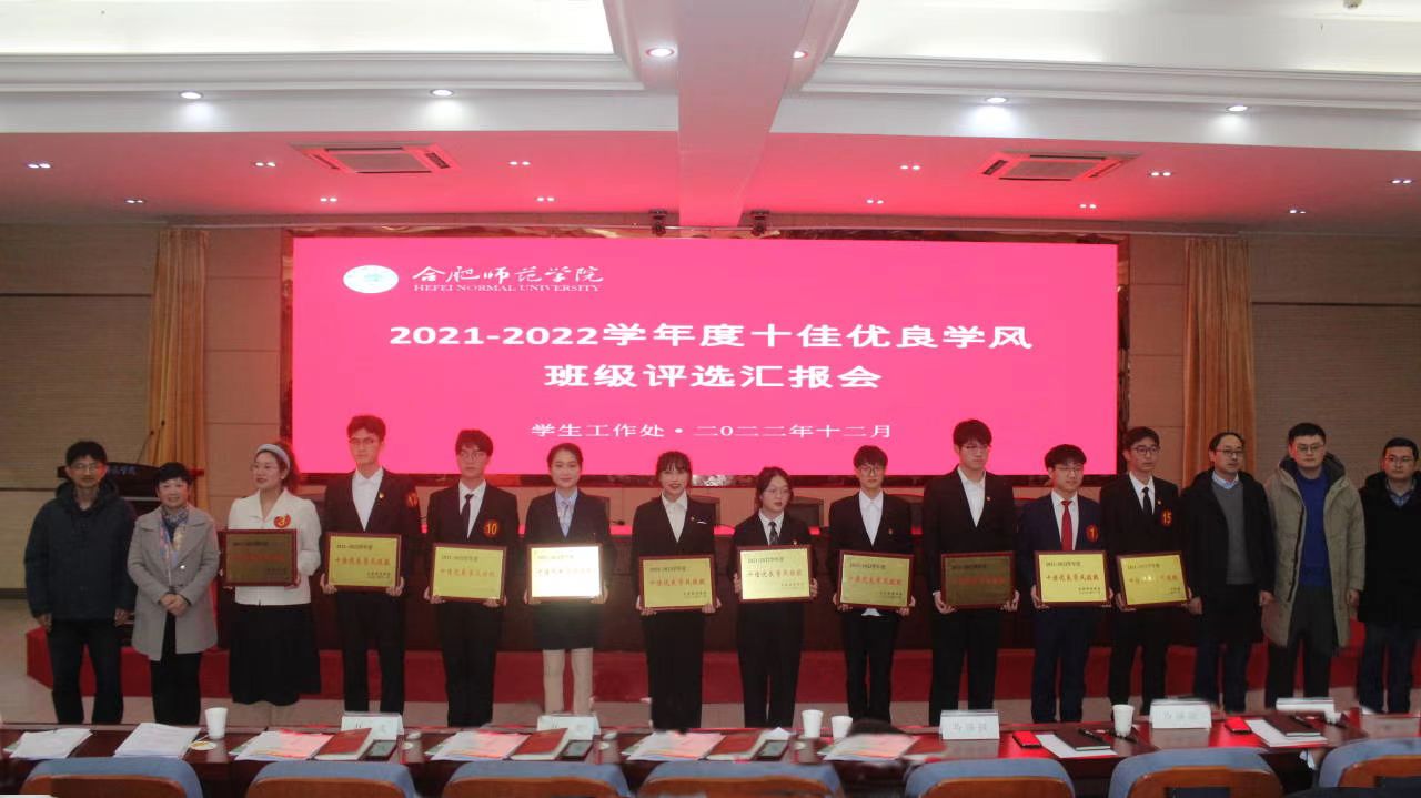 综合材料得分和现场汇报打分,最终获得2021-2022学年度“十佳优良学风班级”荣誉的分别是文学院2021级汉语言文学(师范)1班、外国语学院2020级英语(师范)2班、教师教育学院2020级小学教育1班、音乐学院2020级音乐学(师范)3班、数学与统计学院2020级数学与应用数学2班、生命科学学院2020级生物科学(师范)1班、化学与化学工程学院2020级制药工程2班、经济与管理学院2020级财务管理1班、物理与材料工程学院2020级材料科学与工程班、计算机学院2021级计算机类1班。