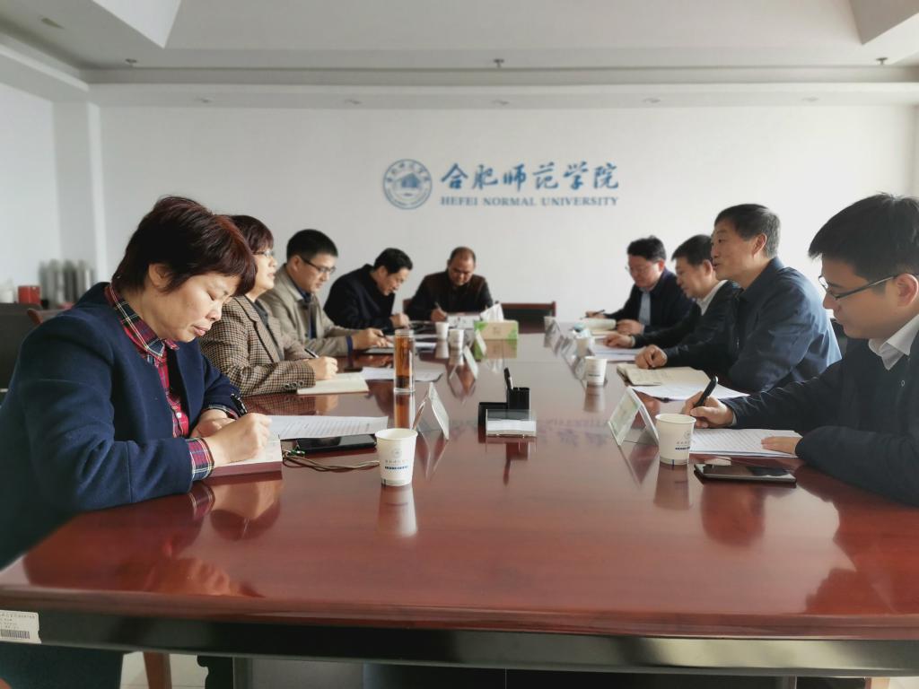 本网讯 11月25日上午,省退役军人事务厅党组成员、副厅长孙邦平,省退役军人事务厅二级巡视员蔡元和、办公室主任刘恒贵、就业创业处副处长钟俊武一行就联合共建安徽退役军人学院事宜来校进行交流对接。院党委副书记、院长方东玲,院党委委员、副院长周端明,人事处、教务处、体育科学学院负责同志参加会议。