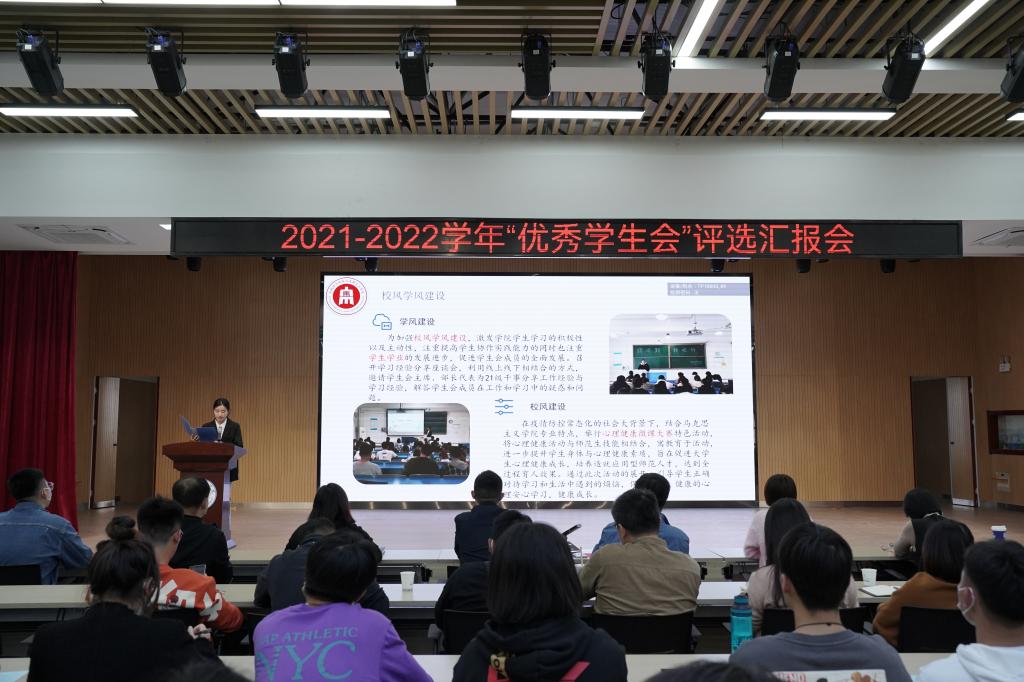本网讯 10月12日中午,学院于锦绣校区大学生活动中心举行2021-2022学年“优秀学生会”评选汇报会。依据《beat365在线唯一官网优秀学生会、优秀学生会干部评选办法(试行)》,经过前期材料申报、资格审查,14个二级学院学生会进入现场评审环节。组织部、宣传部、教务处、学生工作部、就业创业工作处相关教师,院团委全体人员,各二级学院学生代表参加评审。