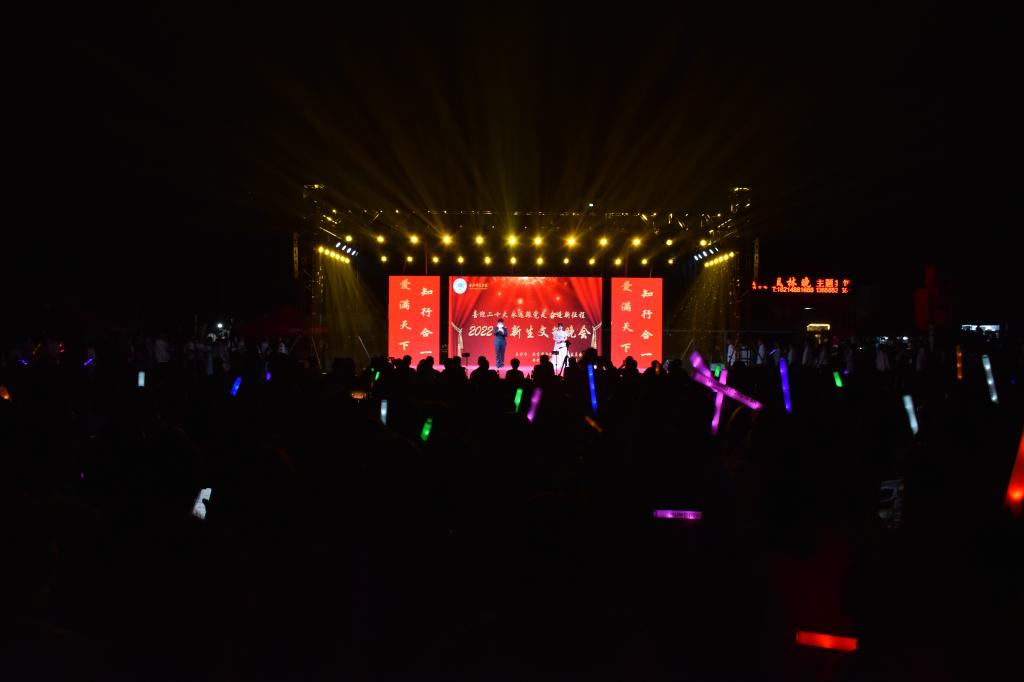 本网讯 9月29日晚,由院团委主办,学生社团文化服务中心承办的2022迎新生文艺晚会在滨湖校区足球场隆重举行。此次晚会以“喜迎二十大 永远跟党走 奋进新征程”为主题,带来了一场缤彩纷呈的视听盛宴。学生工作部部长陆涛,院团委副书记刁文彬,陆军炮兵防空兵学院学员队少校教导员谭鑫,各二级学院分团委书记,2022级新生辅导员及2022级新生到场观看晚会。晚会通过“beat365在线唯一官网团委”官方抖音号和“学生社团文化服务中心”官方QQ号同步直播。